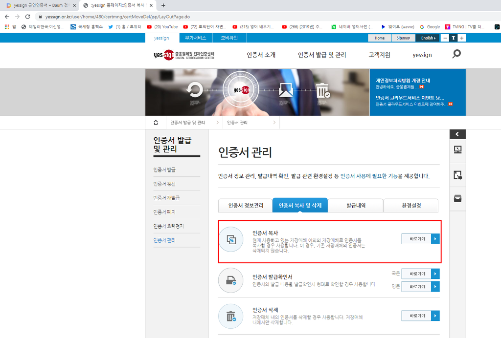 세무대리용 사업자등록번호 공인인증서로 제출가능 - 공인인증서가 안보일경우 새로 공인인증서 사이트나 금융기관에서 복사
