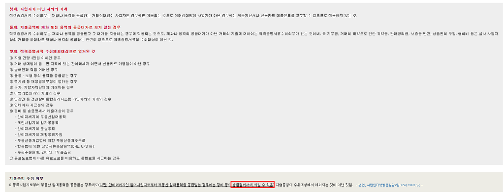④ 다음 각 호의 어느 하나에 해당하는 증명자료를 보관하고 있는 경우에는 신용카드매출전표 및 현금영수증을 수취하여 보관하고 있는 것으로 본다.(2010.02.18 개정)