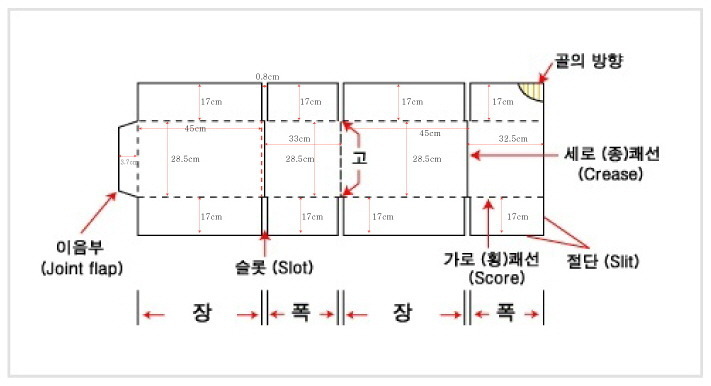 골판지박스: 과일박스 형태로 소형 낱개포장에서 대형 포장까지 고루 사용하는 골이 있는 박스