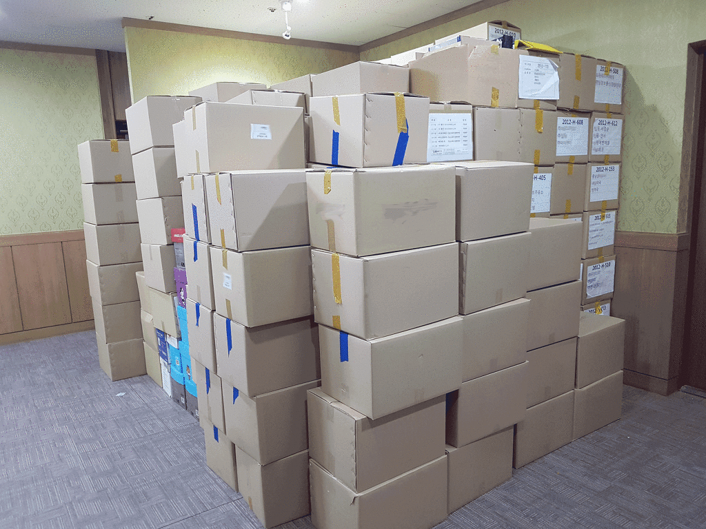 ( 재활용 , 파지 , 박스 , 서고 정리 ) - 직접 현장에 가서 서류 압축하는 것을 반드시 사진 찍기.