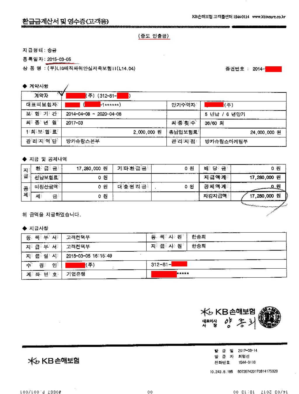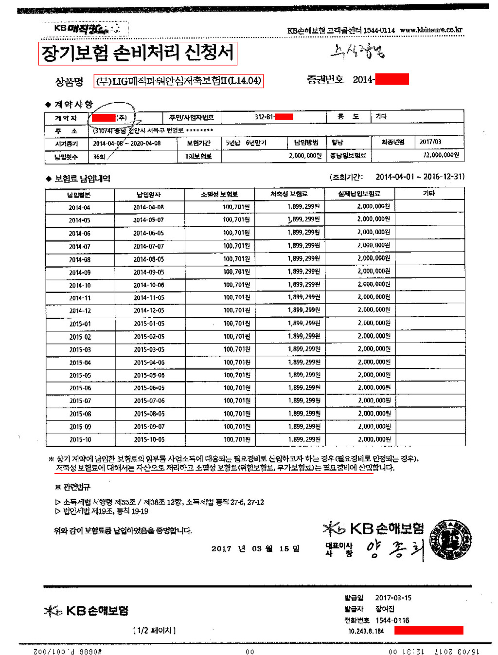 1 - KB 손해보험 (무)LIG매직파워안심저축보험 Ⅱ (L14.04) 증명서 요청시 - 모든 보험 상담원에게 "손비처리용"증명서 발급 , 또한 불입내역 납입증명서 도 작성자EYEDI|작성시간17.03.14|조회수1,296 목록 댓글 0 글자크기 작게가 글자크기 크게가 다음검색 현재 게시글 추가 기능 열기 북마크 공유하기 신고 센터로 신고 댓글 댓글 0 댓글쓰기 답글쓰기 댓글 리스트