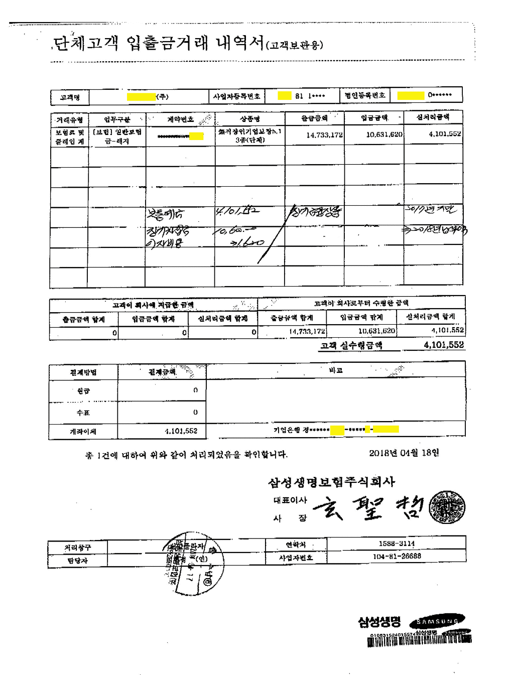 잔고증명서가 최초계약일부터~?? 누적개념??