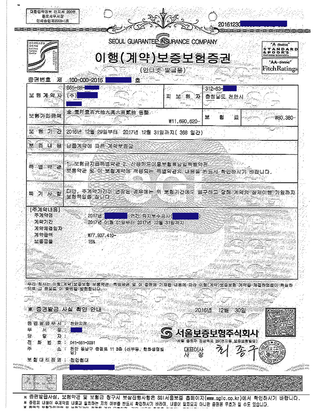 서울보증보험 증권 => 이행(계약)보증보험증권 => (인터넷 발급용) 서울보증보험 www,sgic.co.kr 에서 확인 선급비용계상