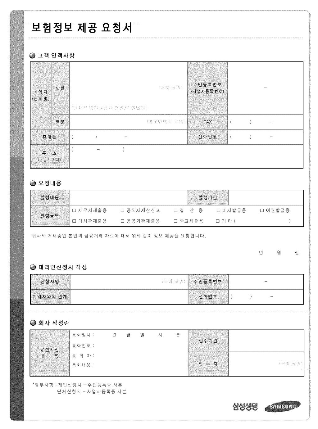 삼성생명 보험정보 제공 요청서 작성자EYEDI|작성시간17.03.26|조회수841 목록 댓글 0 글자크기 작게가 글자크기 크게가 다음검색 현재 게시글 추가 기능 열기 북마크 공유하기 신고 센터로 신고 댓글 댓글 0 댓글쓰기 답글쓰기 댓글 리스트