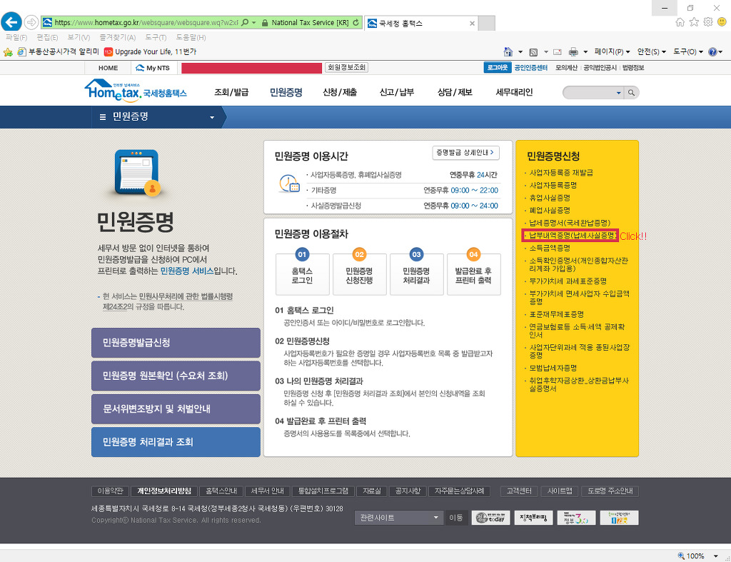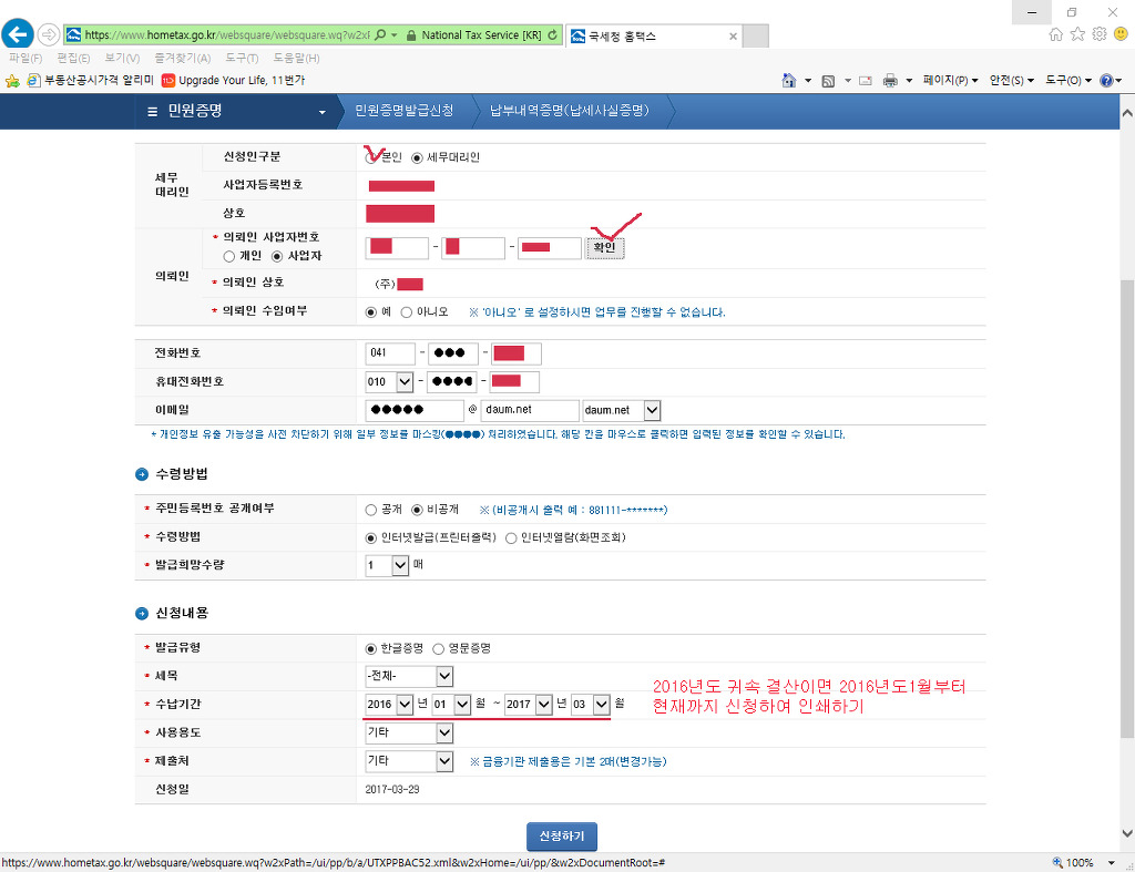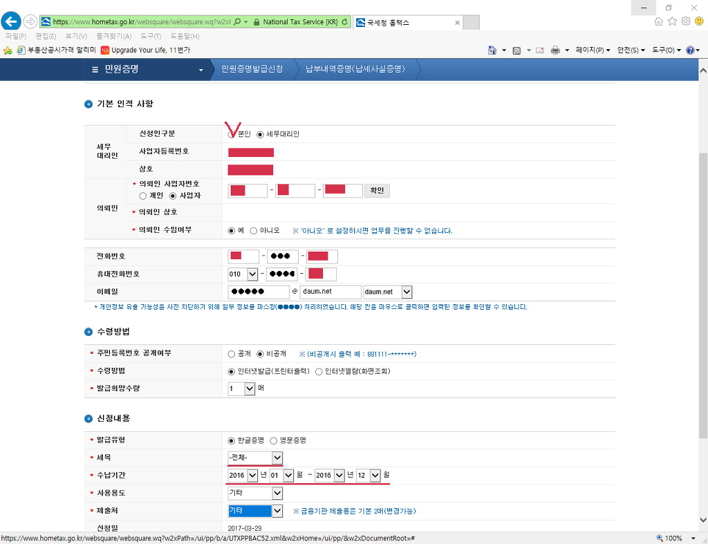 국세청 홈택스 (www.hometax.go.kr) 납세사실증명서 ( 납부내역증명 ) 작성자EYEDI|작성시간17.03.29|조회수505 목록 댓글 0 글자크기 작게가 글자크기 크게가 국세청 홈택스 납부내역증명서를 출력 한 후 엑셀에 직접 입력하여 비고에 급여원천징수 귀속월 및 지급월을 기재하며 대사할 것. 다음검색 현재 게시글 추가 기능 열기 북마크 공유하기 신고 센터로 신고 댓글 댓글 0 댓글쓰기 답글쓰기 댓글 리스트