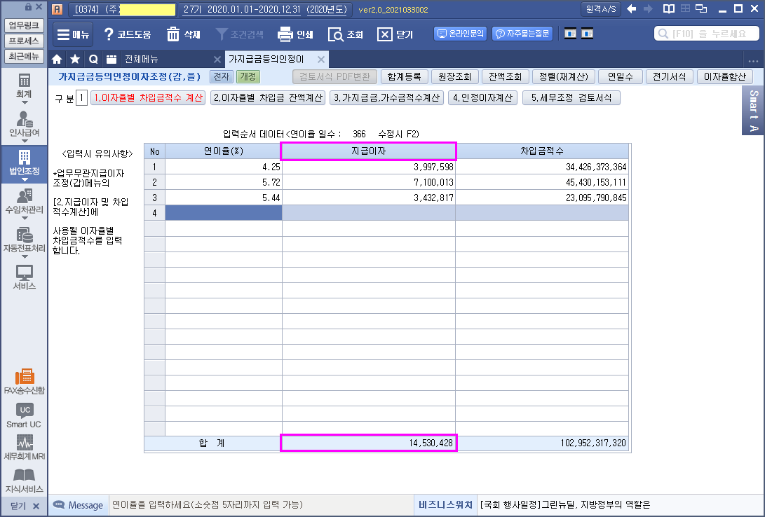 차입금(잔액) & 이자율은 반드시 기재, 가지급금인정이자 가중평균차입이자율인 경우 차입금원금(잔액) 및 기간도 반드시 기재