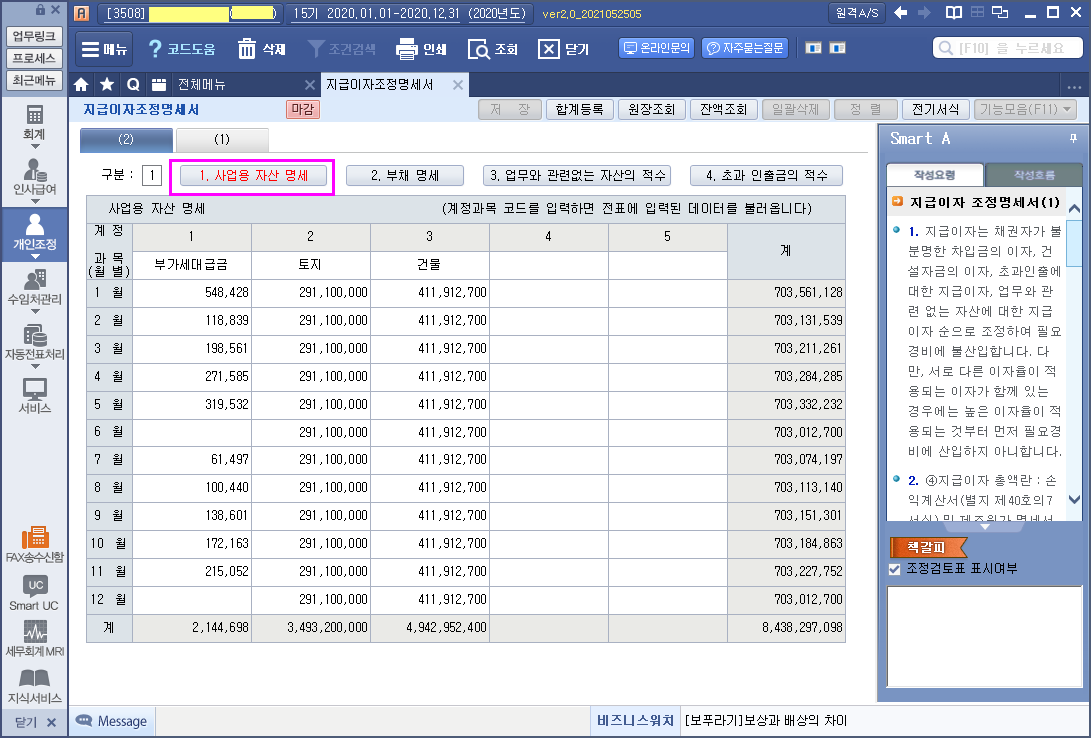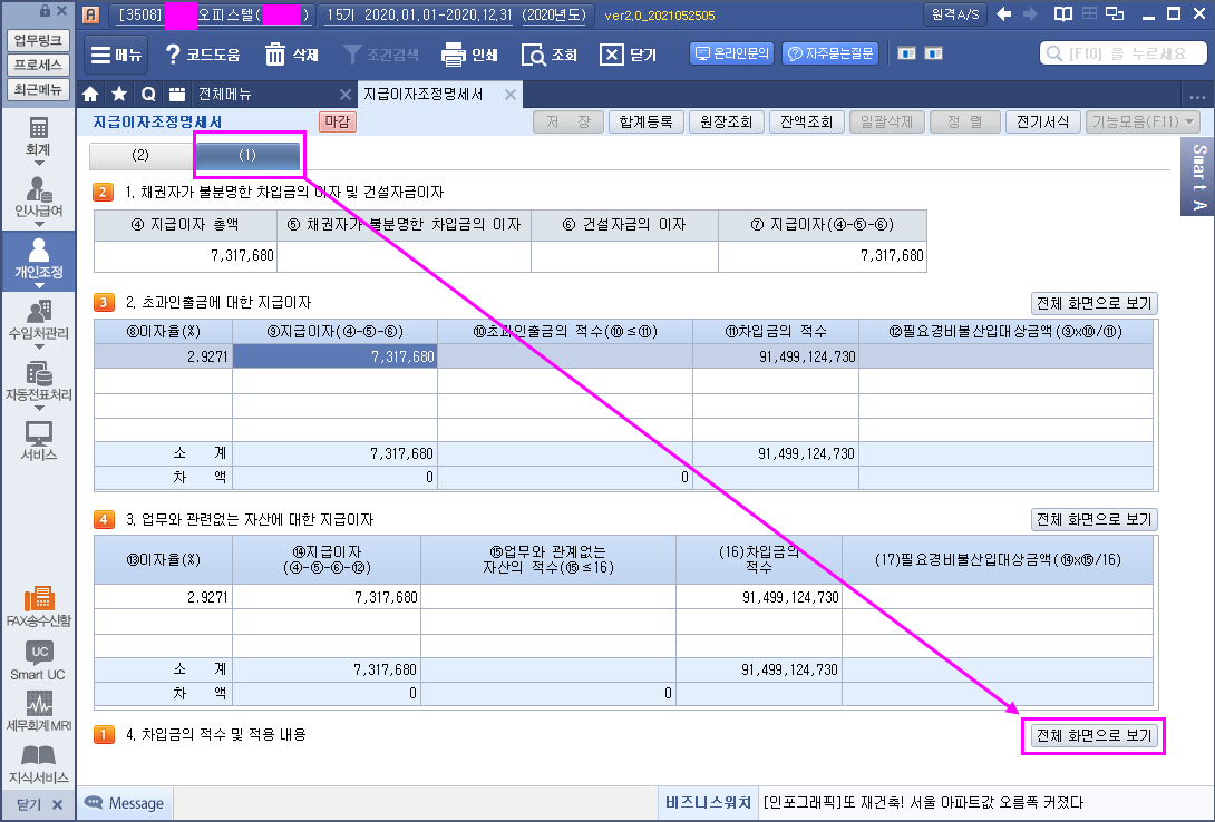 업무무관 지급이자조정명세서
