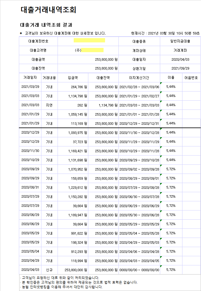 1. 차입금잔액확인
