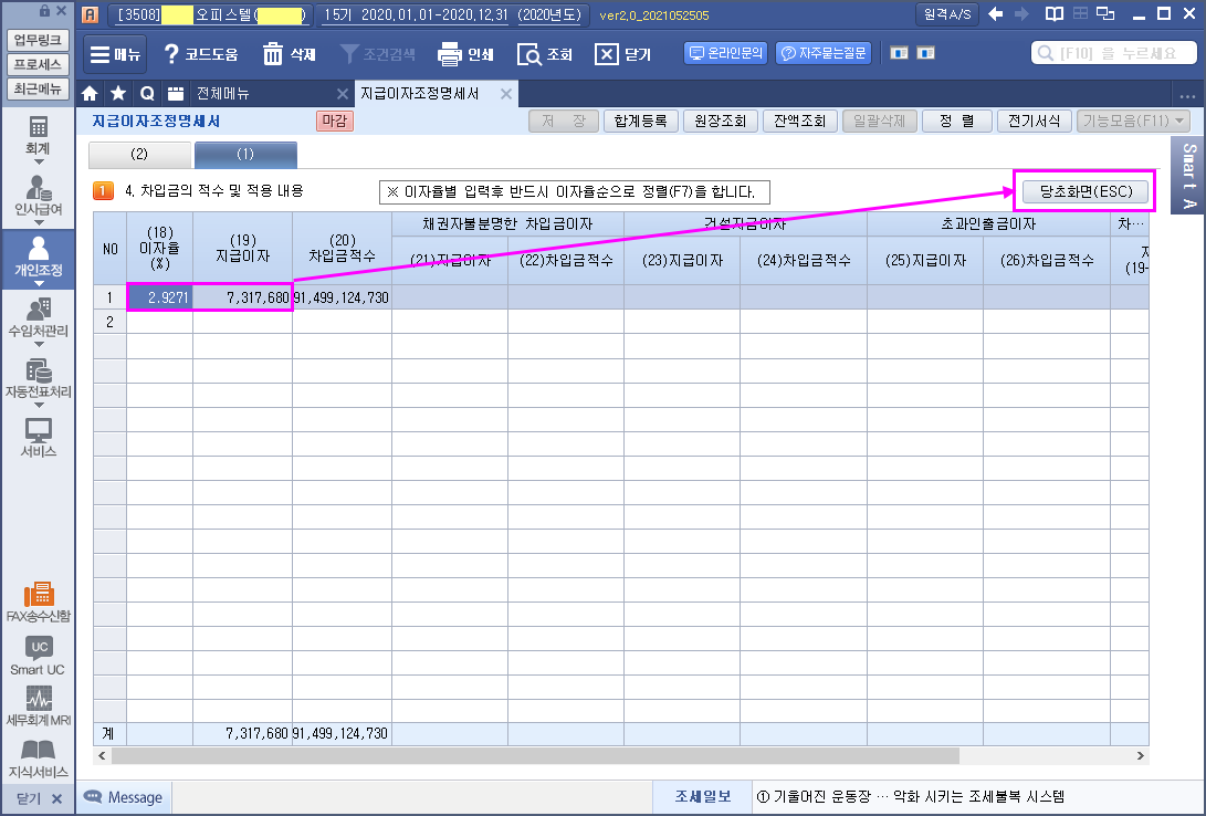 이자비용 적요 적는 법 (이자율,차입원금(잔액),이자계산 기간 반드시 기재) 및 명세서제출제외대상내역의 (16) 금융·보험용역