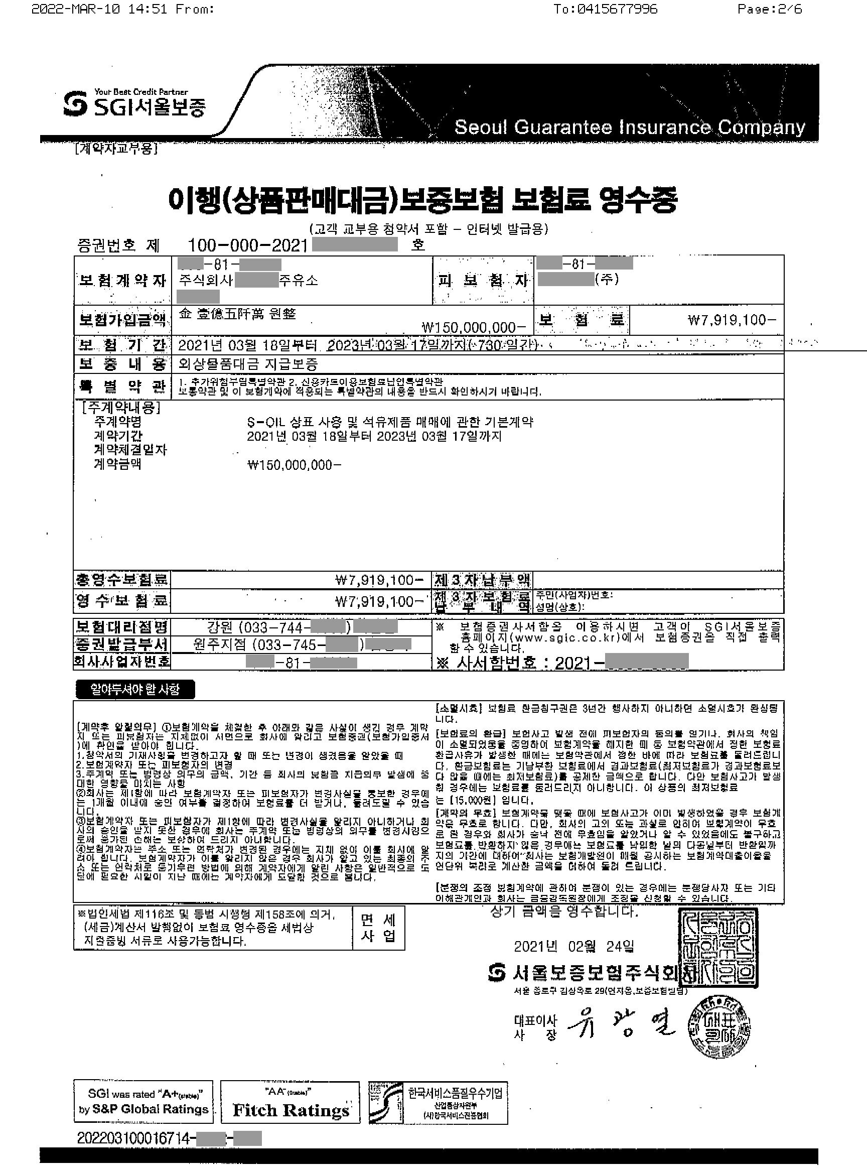 보증보험 보험료 영수증 (서울보증보험주식회사) 작성자주황규|작성시간22.03.10|조회수629 목록 댓글 0 글자크기 작게가 글자크기 크게가 다음검색 현재 게시글 추가 기능 열기 북마크 공유하기 신고 센터로 신고 댓글 댓글 0 댓글쓰기 답글쓰기 댓글 리스트