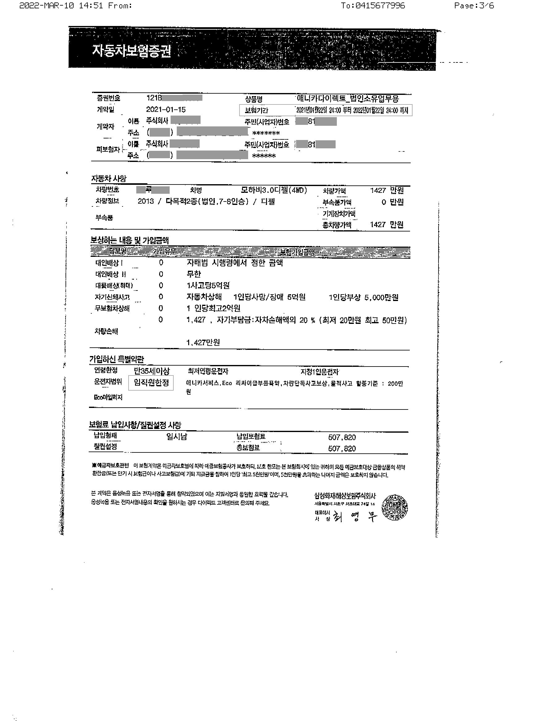법인 명의 (자가/리스/렌트) 자동차보험 증권 (보험가입증서) /운전자범위(임직원한정) 작성자주황규|작성시간22.03.10|조회수609 목록 댓글 0 글자크기 작게가 글자크기 크게가 다음검색 현재 게시글 추가 기능 열기 북마크 공유하기 신고 센터로 신고 댓글 댓글 0 댓글쓰기 답글쓰기 댓글 리스트