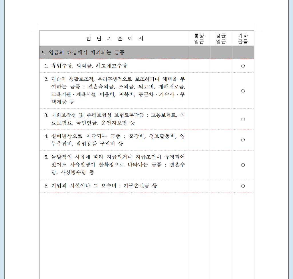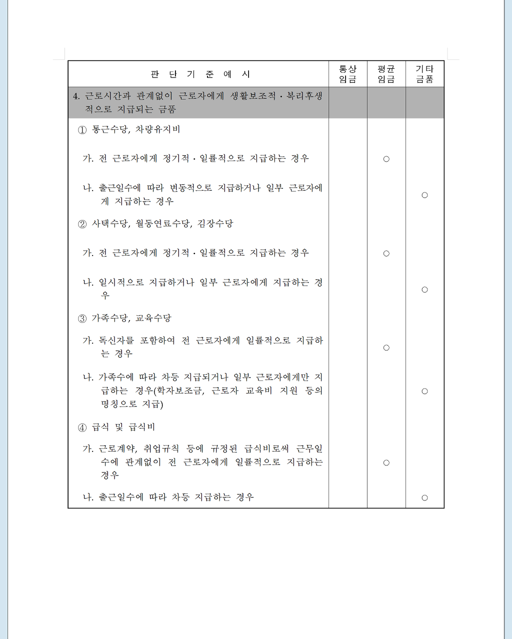 이급/주급/월급 금액은 통상임금만이 해당된다.