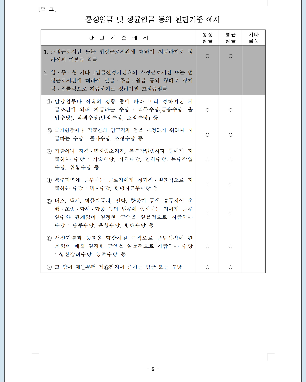 ②제1항제6호에 따라 산출된 금액이 그 근로자의 통상임금보다 적으면 그 통상임금액을 평균임금으로 한다.
