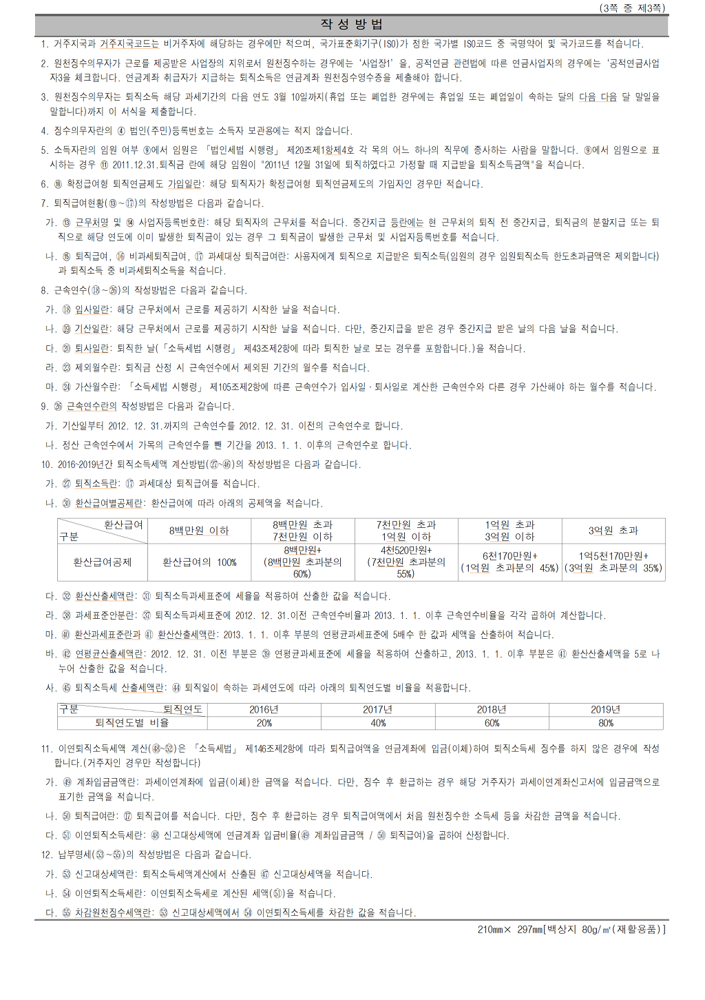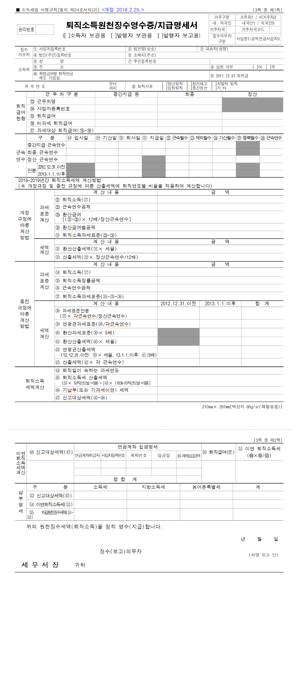 국세청 홈페이지 > 국세정보 > 세무서식 > 소득세법 > 20160225 > 퇴직소득원천징수영수증/지급명세서