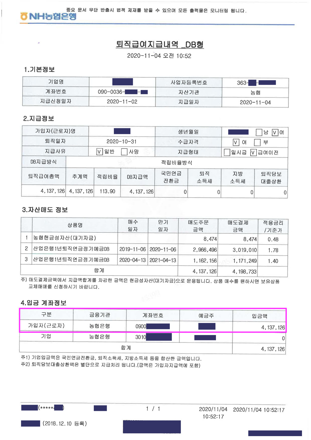연금입금 연금사업자 사업자등록번호??? 농협 104-86-39742