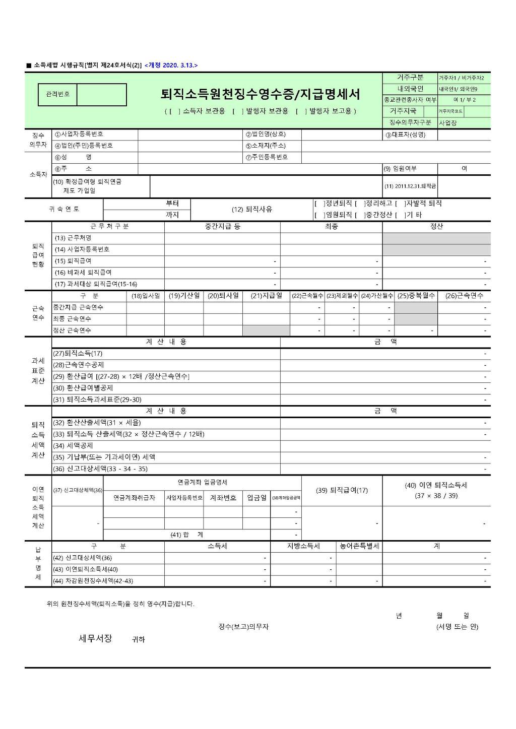 퇴직소득(A20) 4.인원 5.총지급액은 기존과 동일하게 총퇴직금을 기재