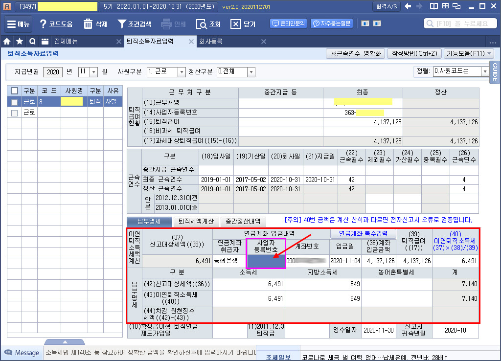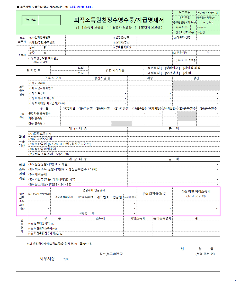 6.소득세등은 퇴직소득세가 전액 과세이연되므로 0으로 작성하셔야합니다