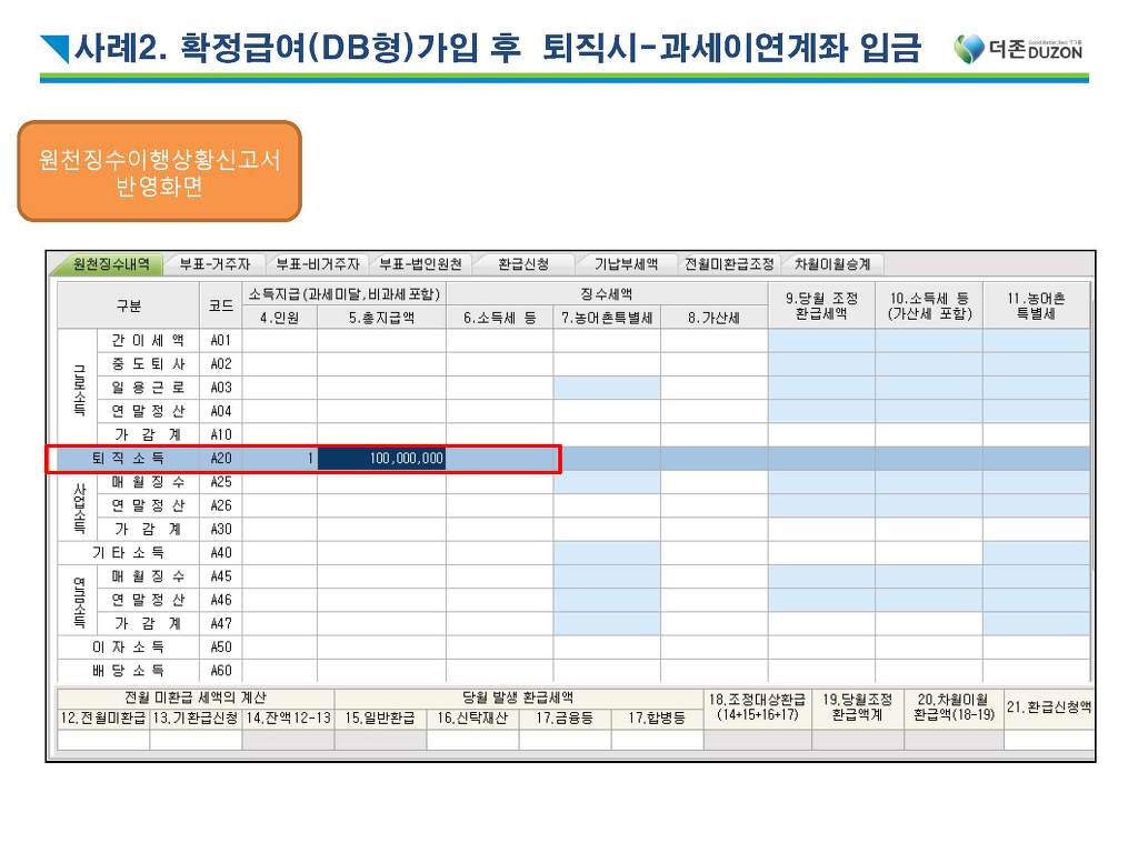 IRP계좌 개설로 전액과세 이연되는경우 원천징수 이행상황신고서 에서