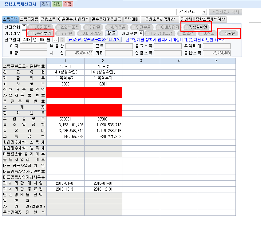 ❸ 세무대리인랑은 세무사(세무사법 제6조의 규정에 의하여 등록한 세무사인 공인회계사와 세무법인 및 회계법인을 포함. 이하 같음)가 기장, 조정 또는 신고서를 작성한 경우에만 적습니다.