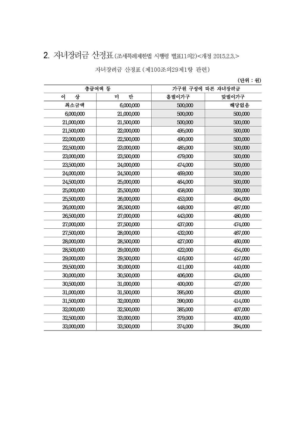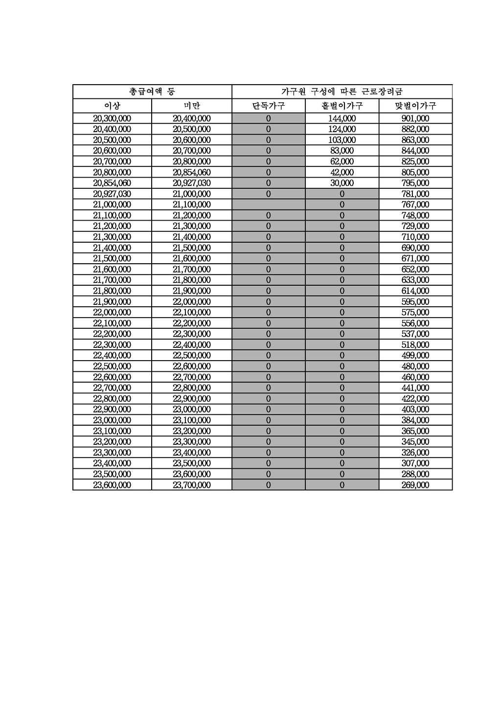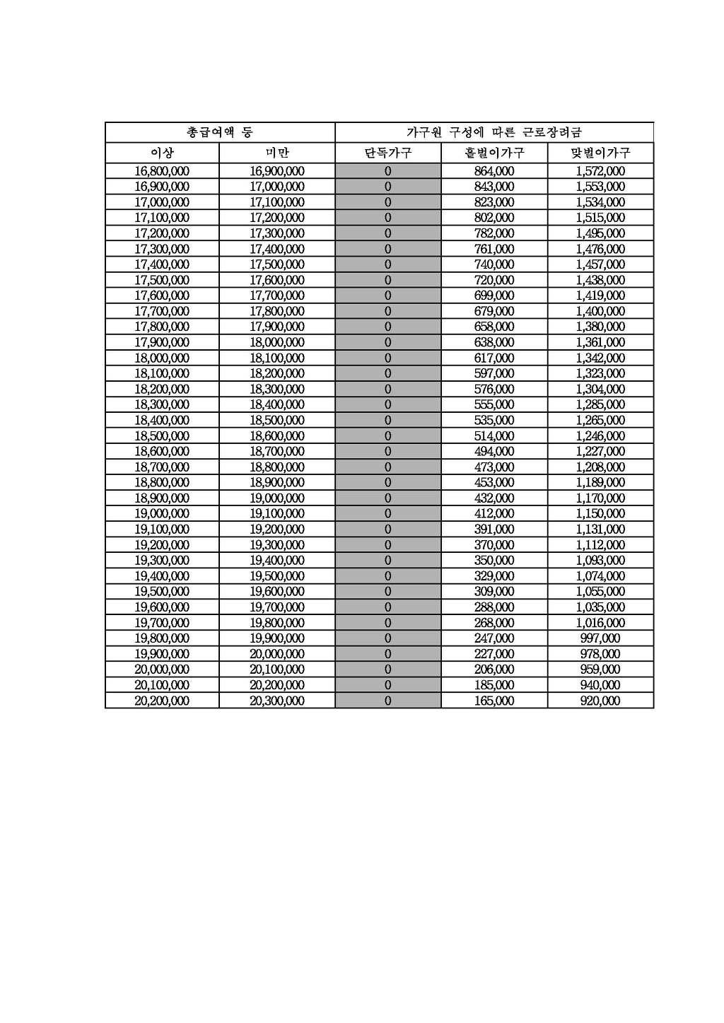 위 산식은 계산편의를 위한 것이며 정확한 금액은 근로장려금 산정표에 따라 지급하므로 다소 차이가 있을 수 있습니다.