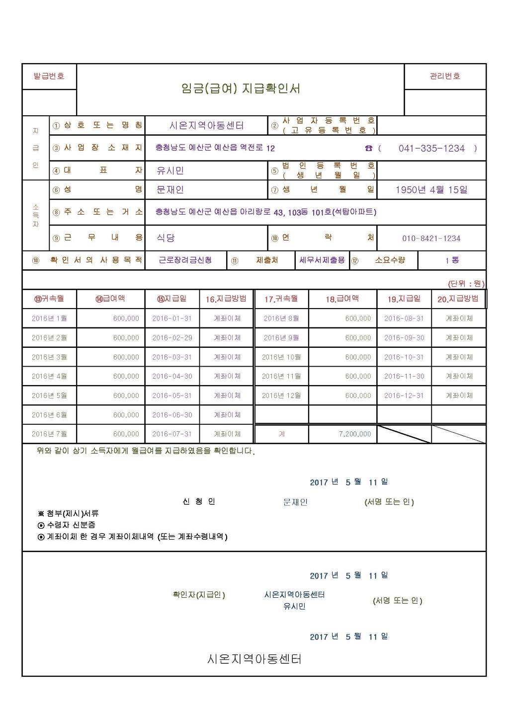 급여지급확인서 - 주황규 만든 서식 작성자EYEDI|작성시간17.05.11|조회수2,383 목록 댓글 0 글자크기 작게가 글자크기 크게가 급여지급확인서 (샘플) - 주황규.xlsx 첨부파일첨부된 파일이 2개 있습니다. jpg 파일 급여지급확인서 (샘플) - 주황규.jpg 다운로드 xlsx 파일 급여지급확인서 (샘플) - 주황규.xlsx 다운로드 다음검색 현재 게시글 추가 기능 열기 북마크 공유하기 신고 센터로 신고 댓글 댓글 0 댓글쓰기 답글쓰기 댓글 리스트