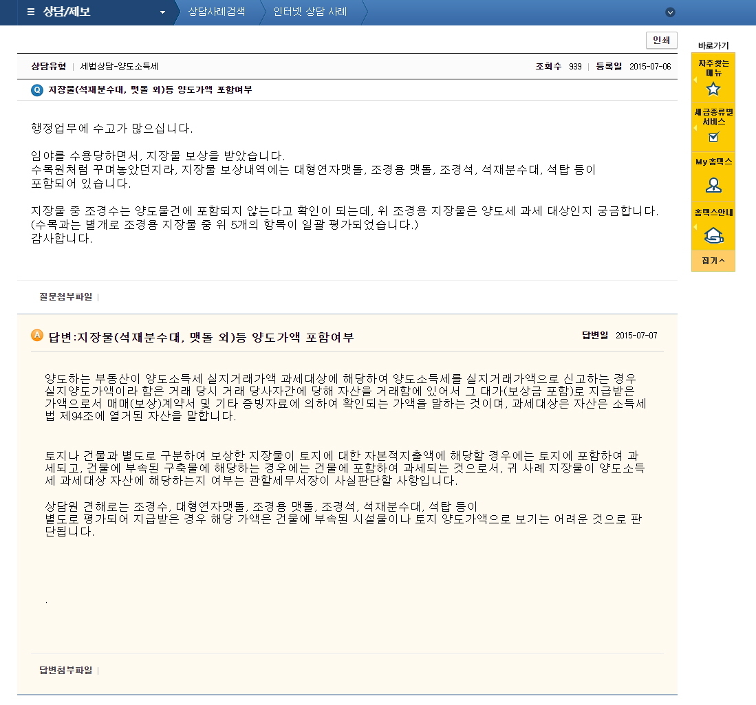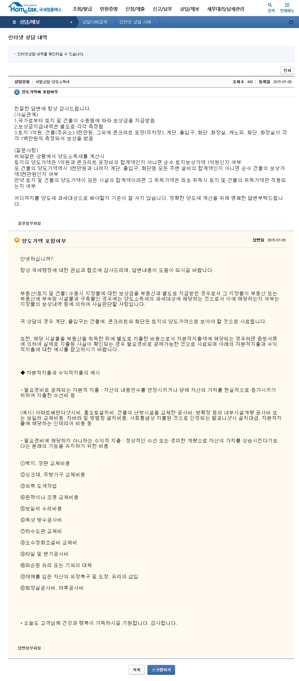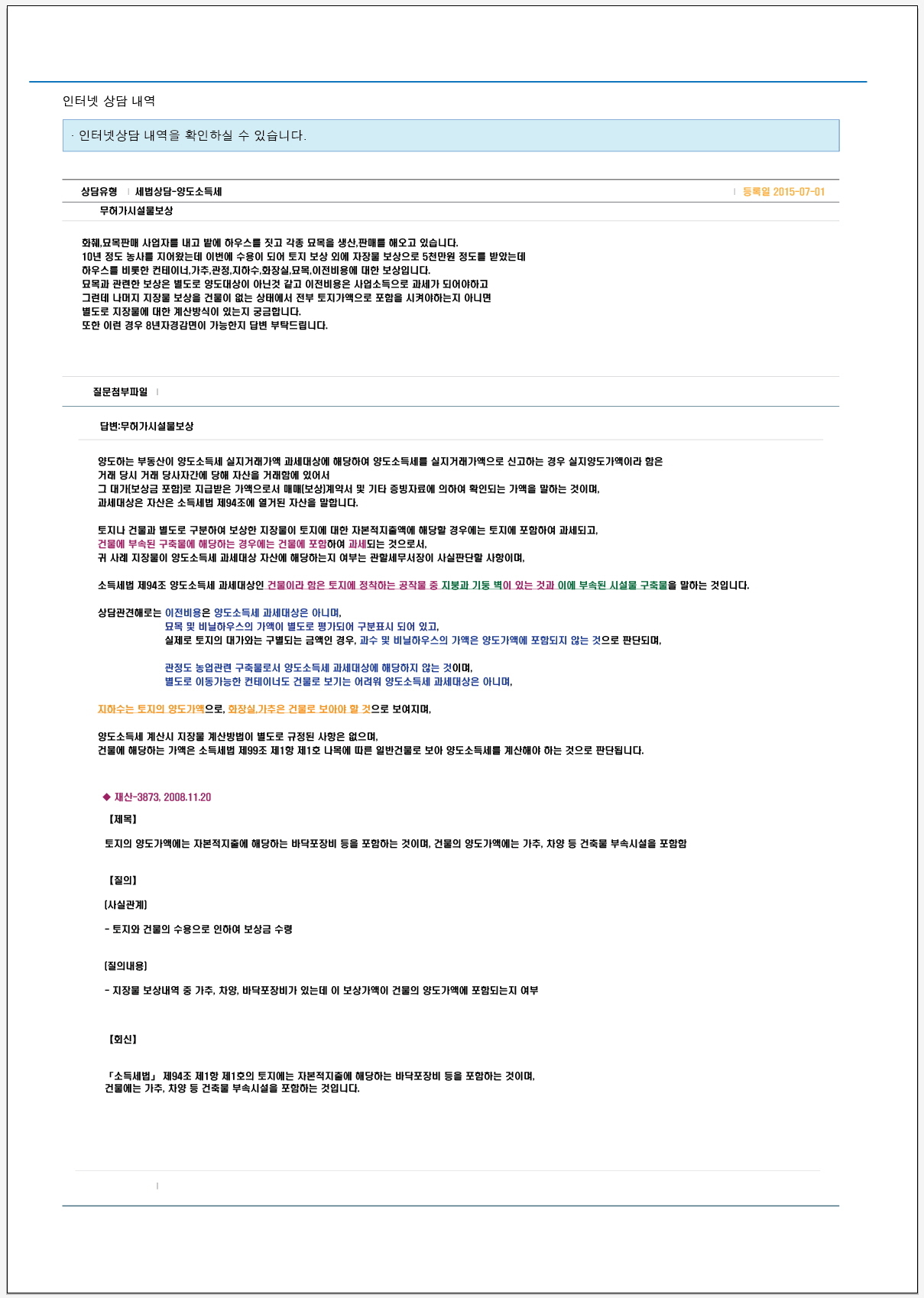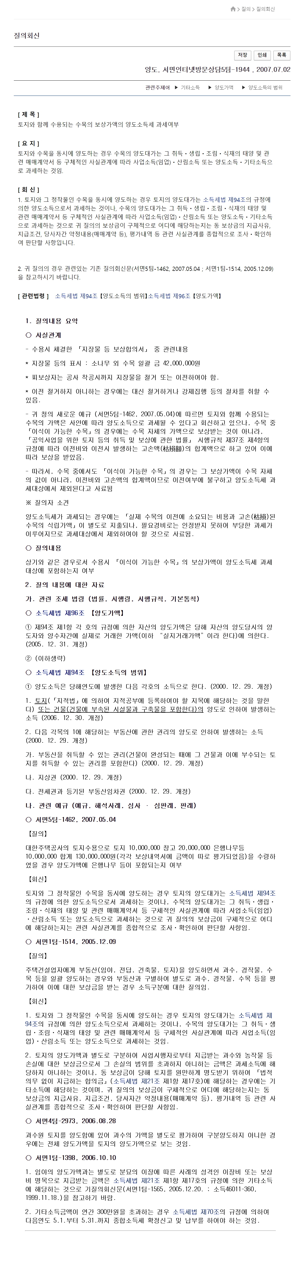 [제목] 토지양도대가와 별도로 지급받는 보상금에 대한 소득구분