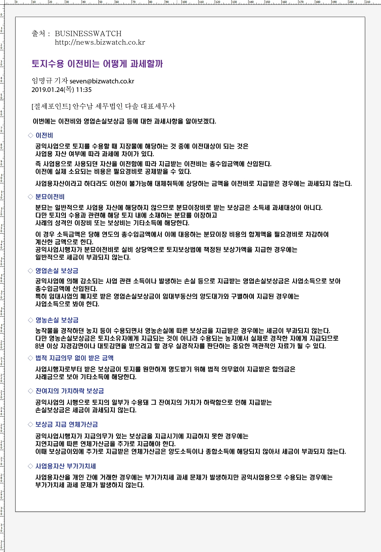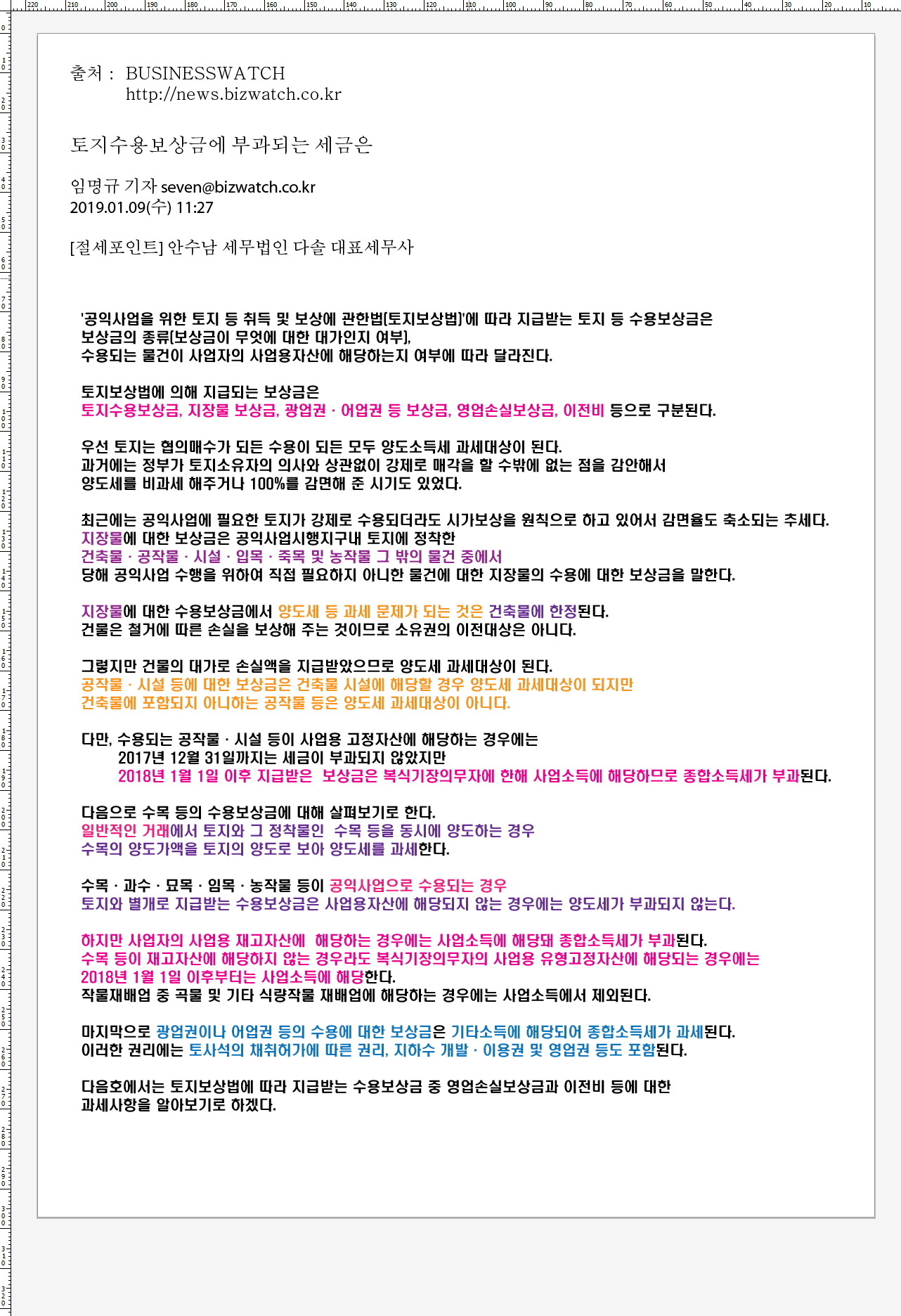 [제목] 토지수용관련 보상금의 소득구분 및 양도시기