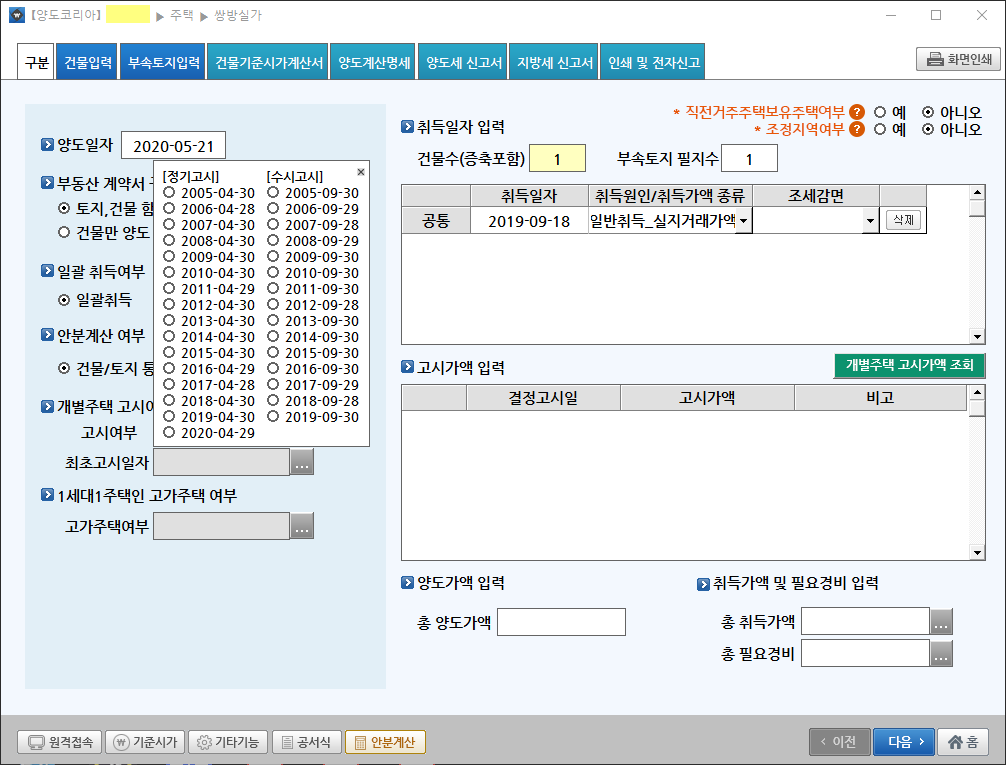☞ 건물기준시가 자동계산프로그램 : 국세청홈택스(http://www.hometax.go.kr) => 조회/발급 => 기타조회 => 기준시가 조회 => 건물기준시가(상속,증여)