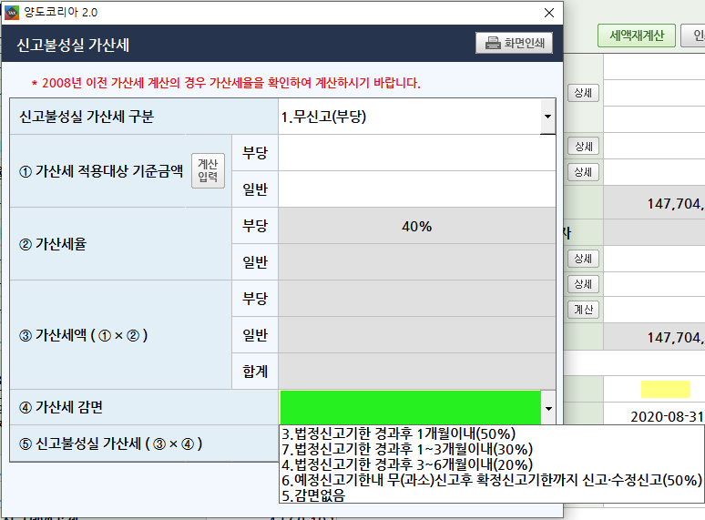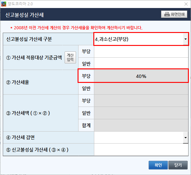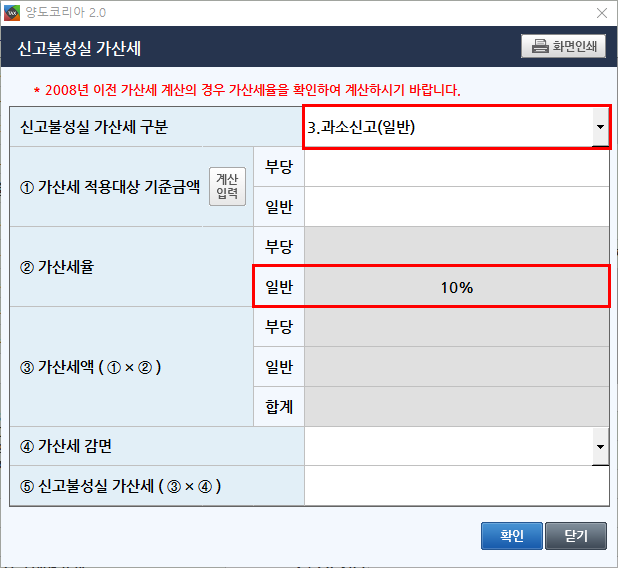 * (2015.6.30. 이전 상속분) 일반과소신고가산세 = [산출세액(할증과세액포함) × (일반과소신고과세표준/결정과세표준) - 사전증여재산에 대한 증여(납부)세액공제 ] × 10%