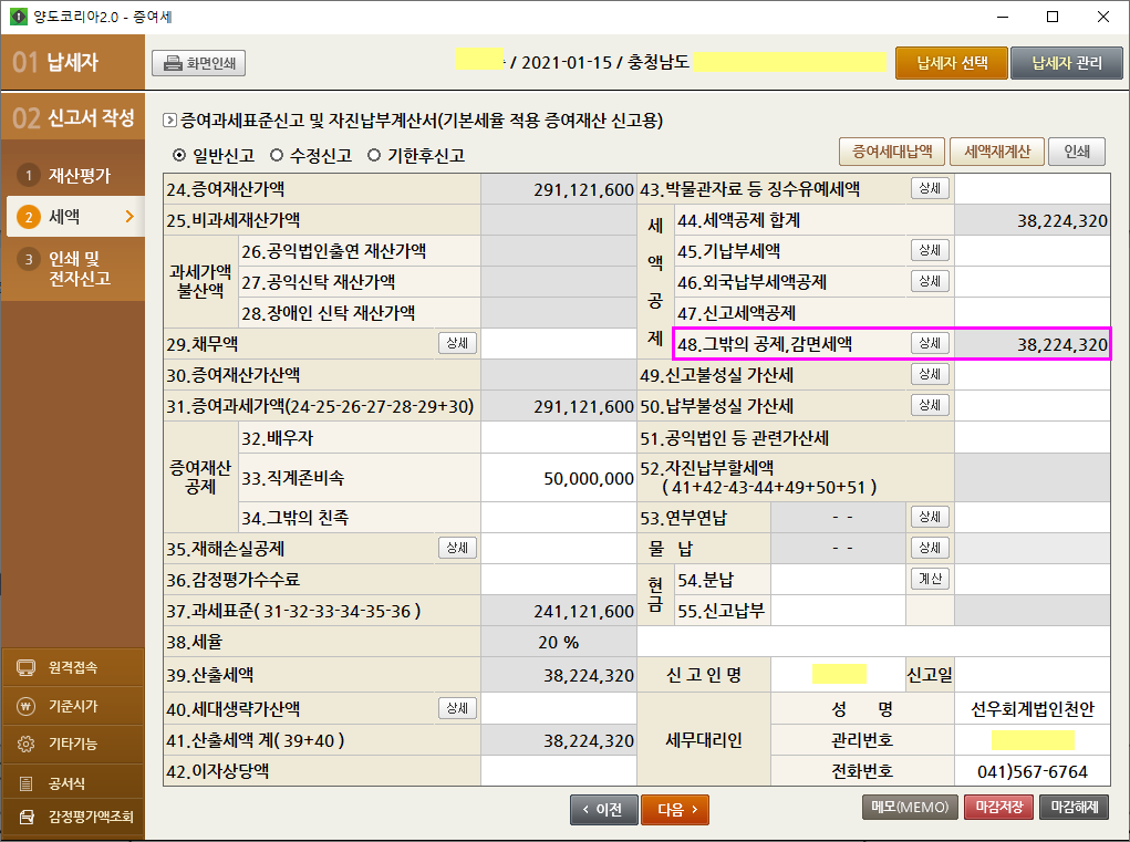 대한 증여세 감면을 받았슴