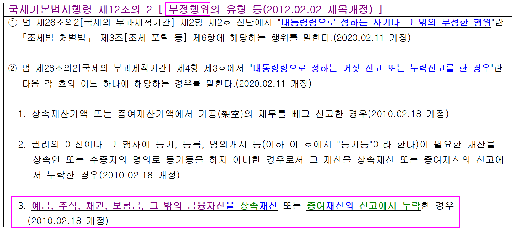 3. 「상속세 및 증여세법」 제67조[상속세 과세표준신고] 및 제68조[증여세 과세표준신고]에 따라 신고서를 제출한 자가 대통령령으로 정하는 거짓신고 또는 누락신고를 한 경우(그 거짓신고 또는 누락신고를 한 부분만 해당한다)(2019.12.31 개정)