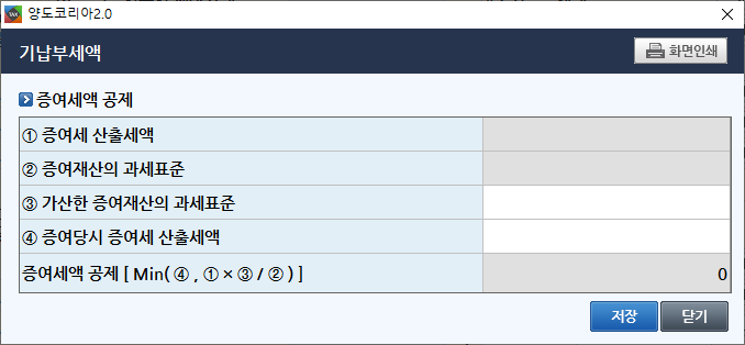 | 한도액 = 증여세 산출세액× | 가산하는 증여재산에 대한 증여세 과세표준 |