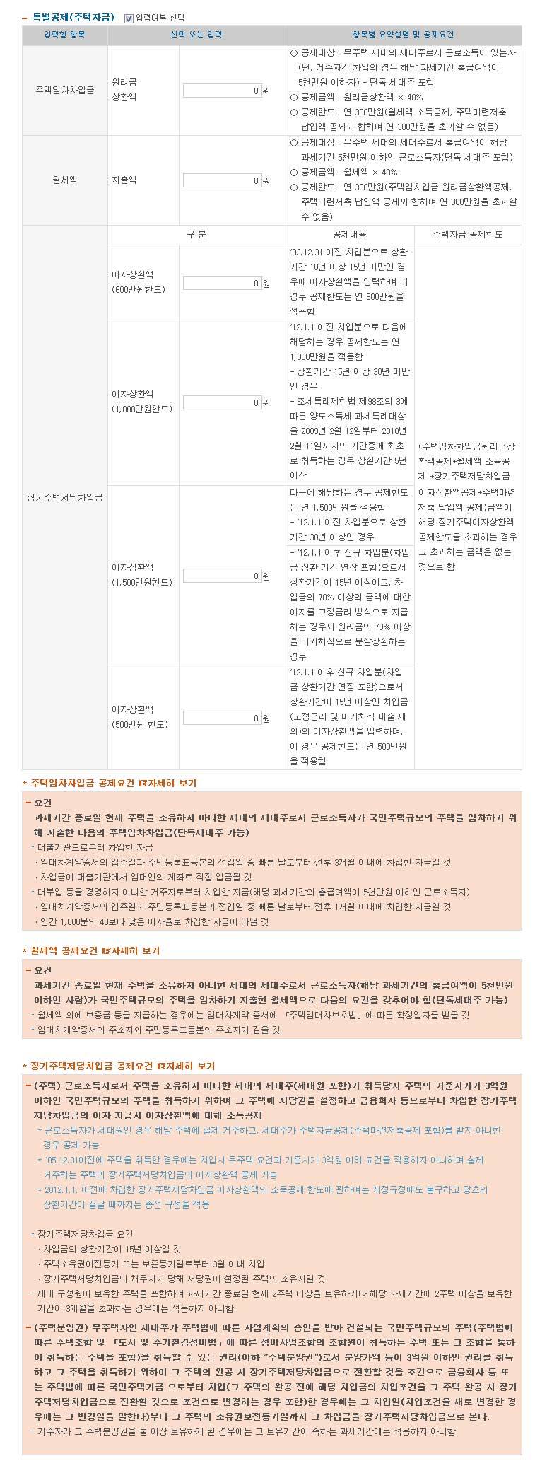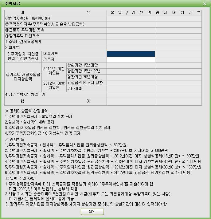 주택마련저축 납입액 공제, 주택임차차입금원리상환액공제, 월세액 소득공제, 장기주택저당차입금 이자상환액공제금액의