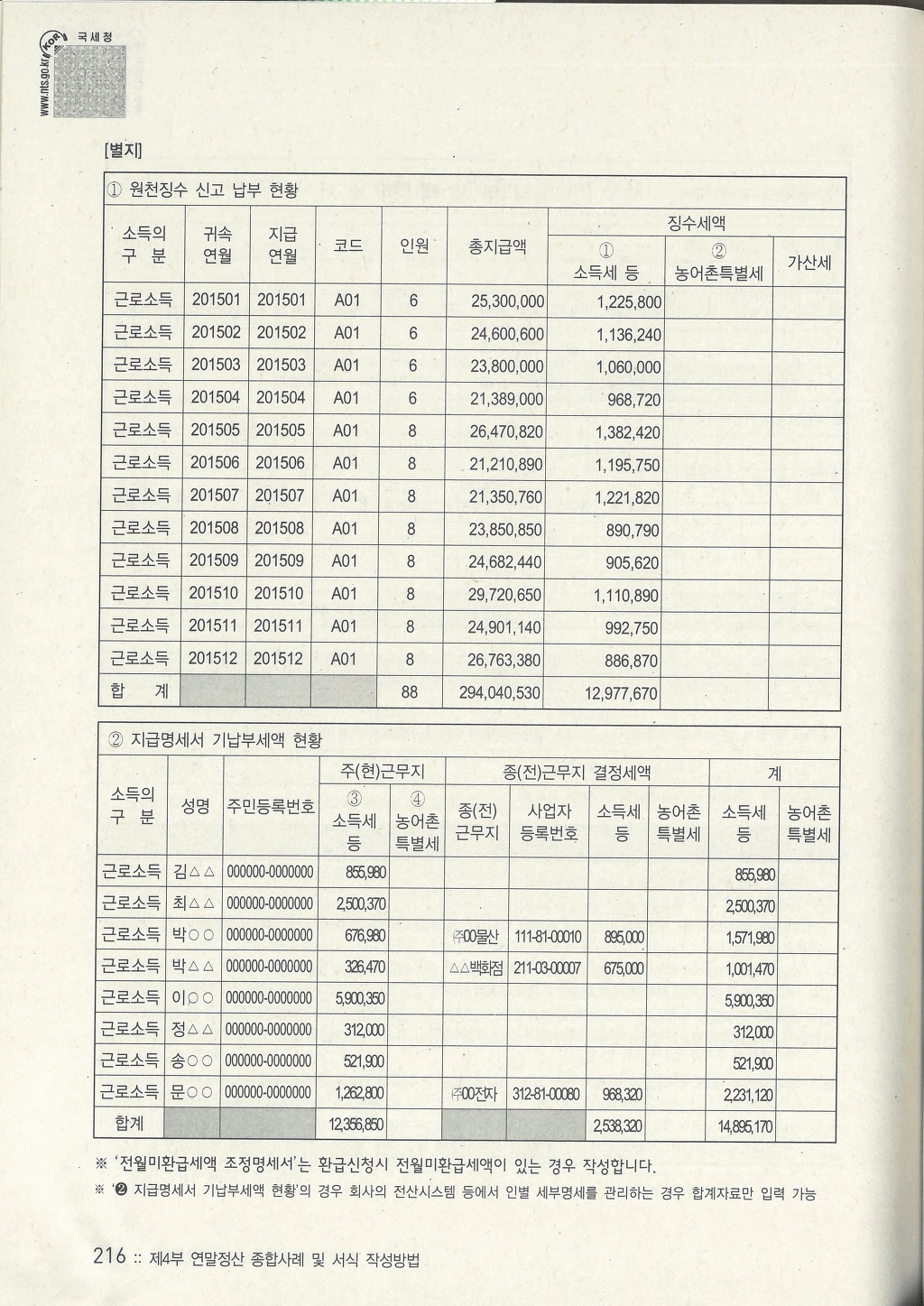 - (근로소득지급명세서) 오류 점검 실시 및 오류 보완