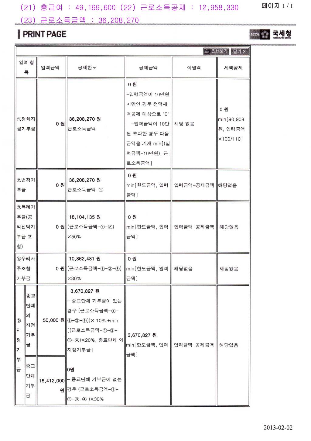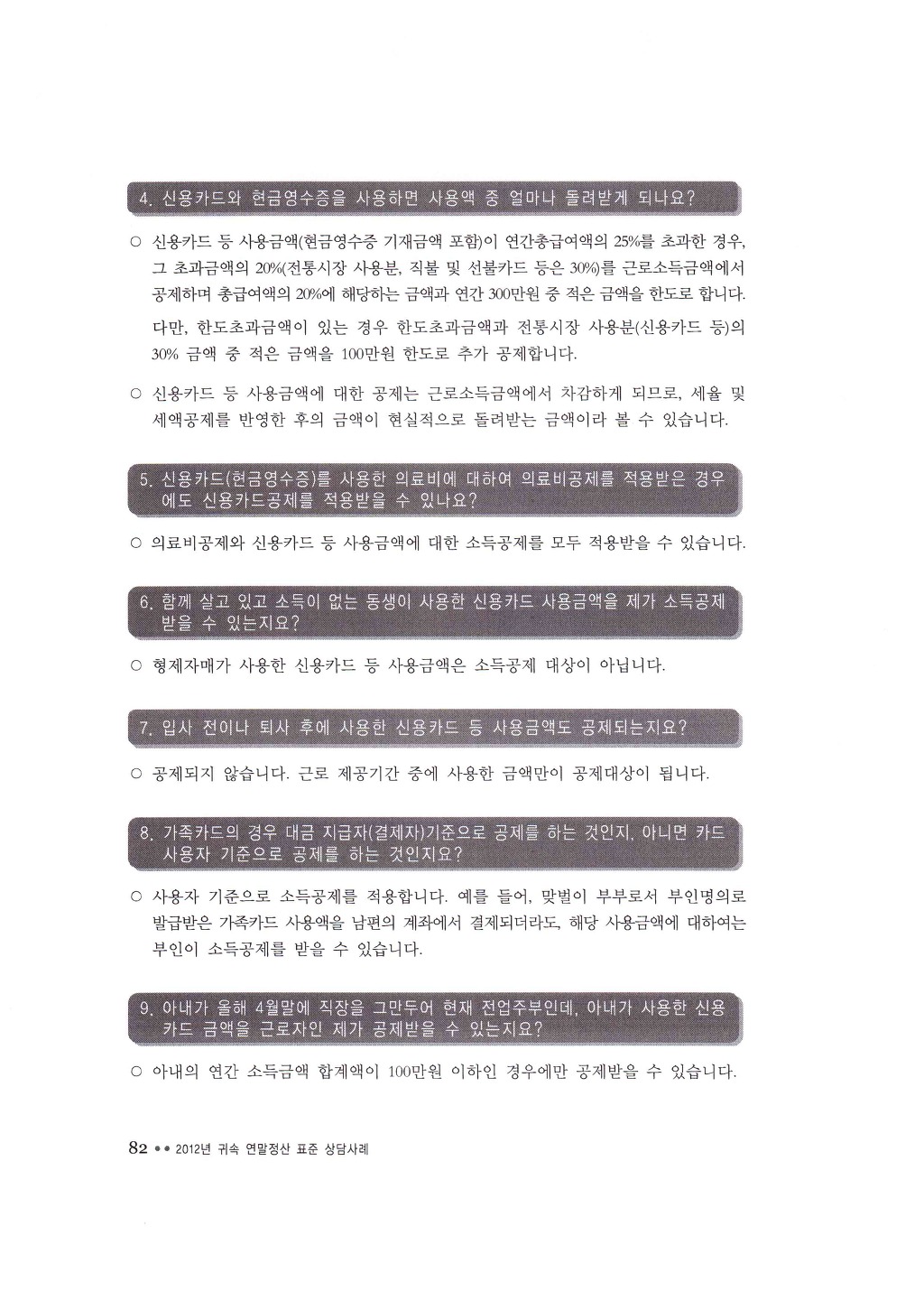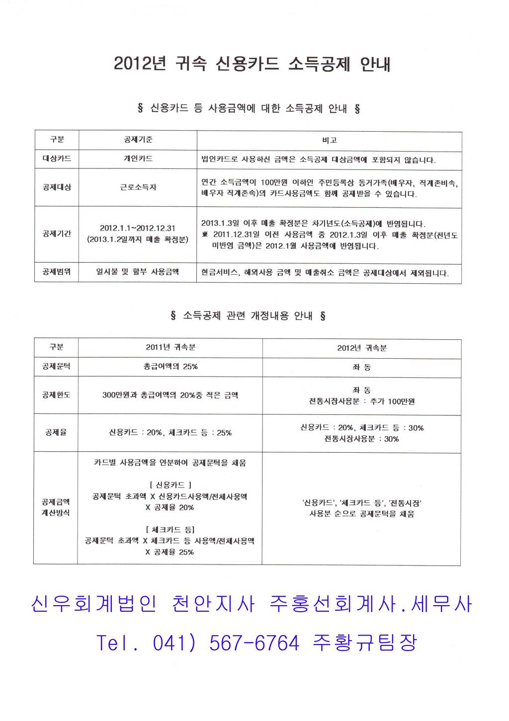 2012년귀속 신용카드등 소득공제 , 의료비 소득공제 , 교육비 소득공제