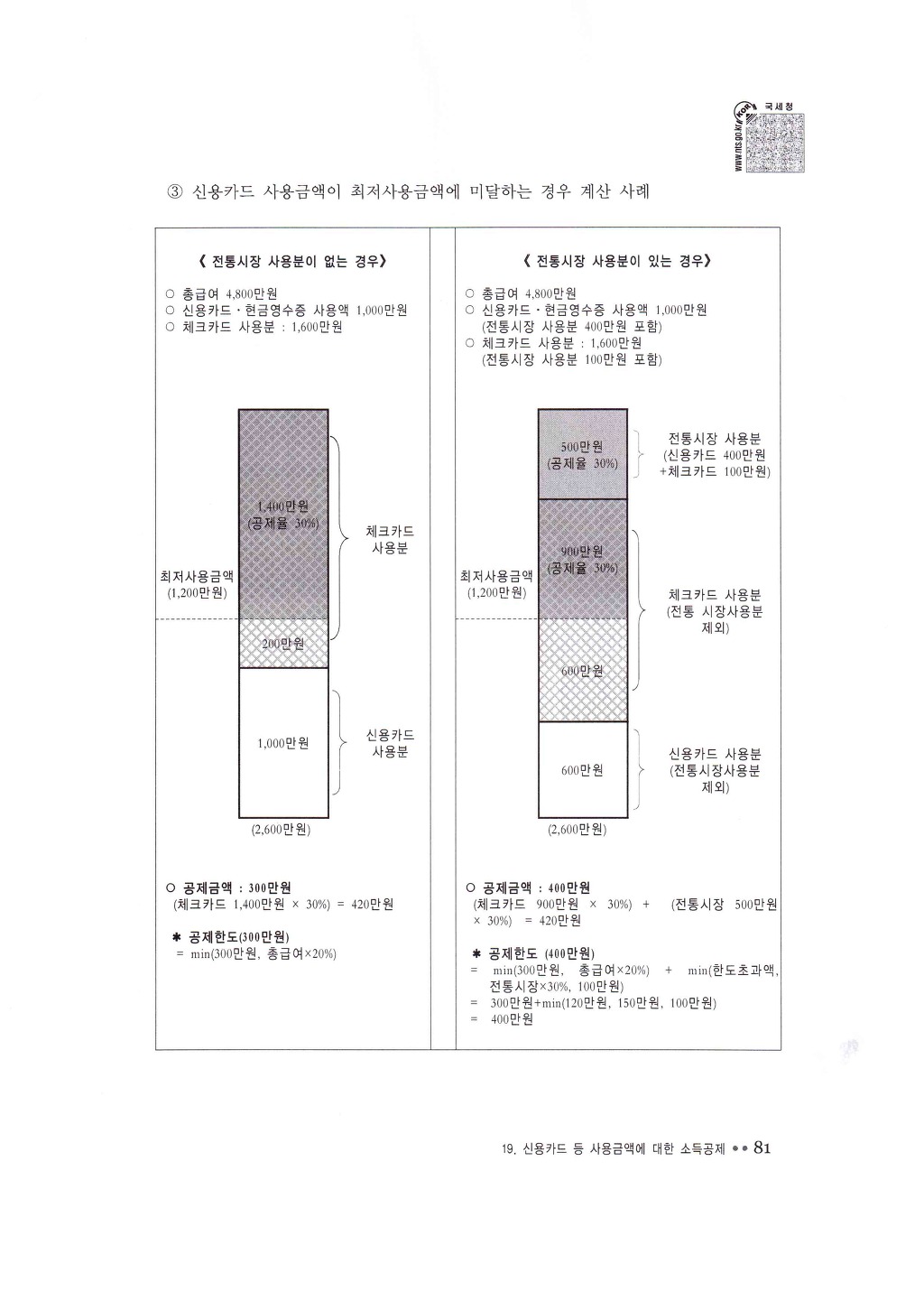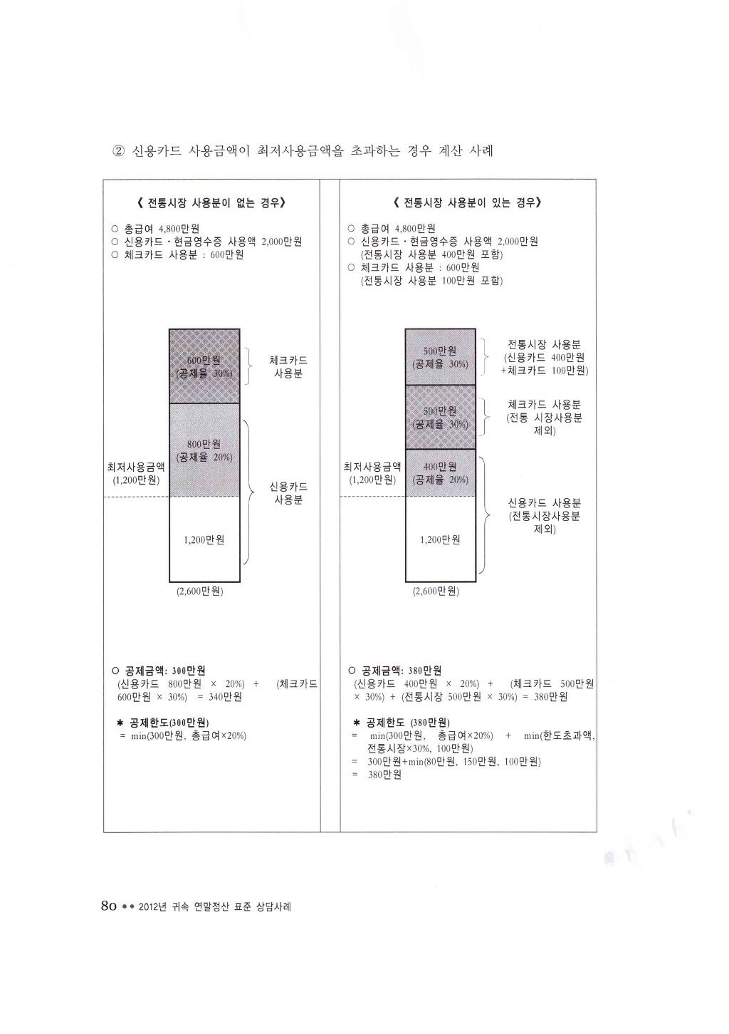 ㆍ최저사용금액(총급여액의 25%)≤신용카드사용분: 최저사용금액× 20%