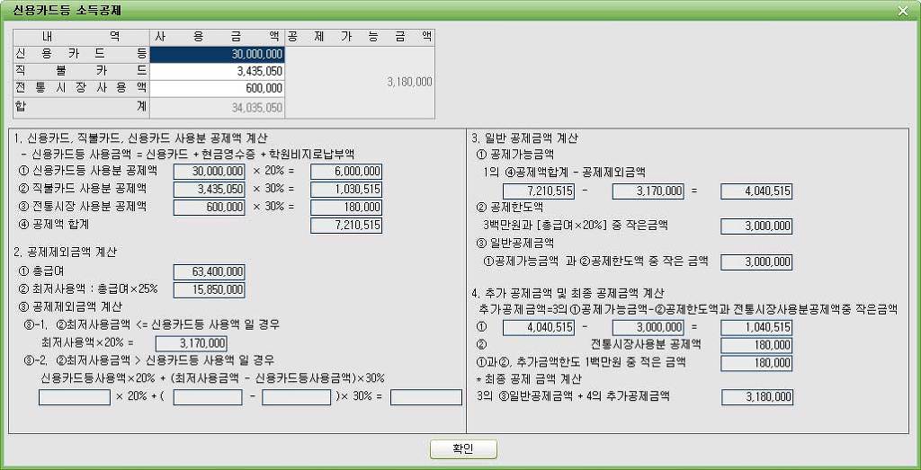 먼저 신용카드 등 소득공제의 계산법을 알아볼게요.