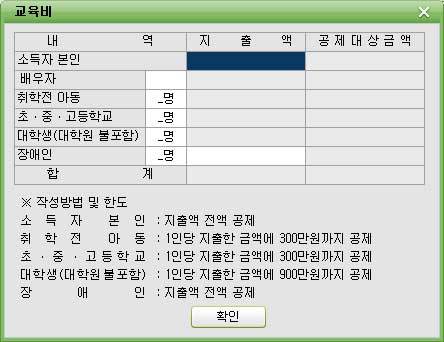 * 근로소득자 본인의 경우 다음의 교육비를 합산한 금액