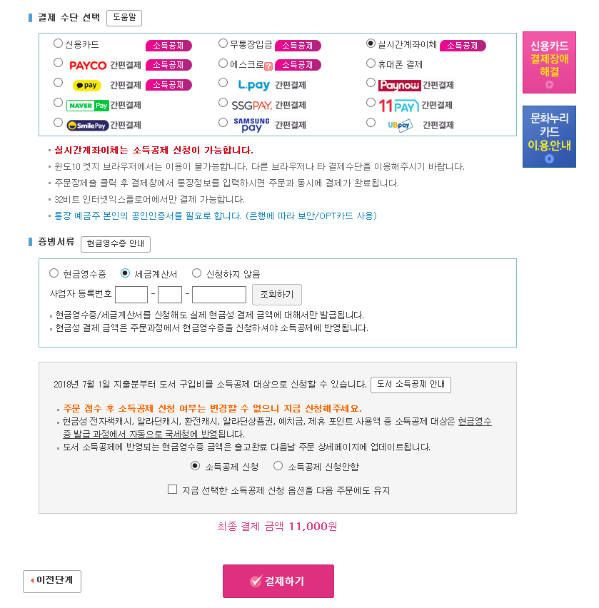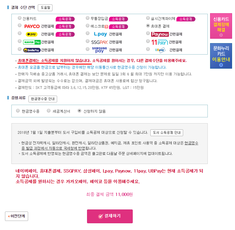 (도서 소득공제)도서 소득공제 신청 가능, 불가능 결제 수단은 무엇입니까?