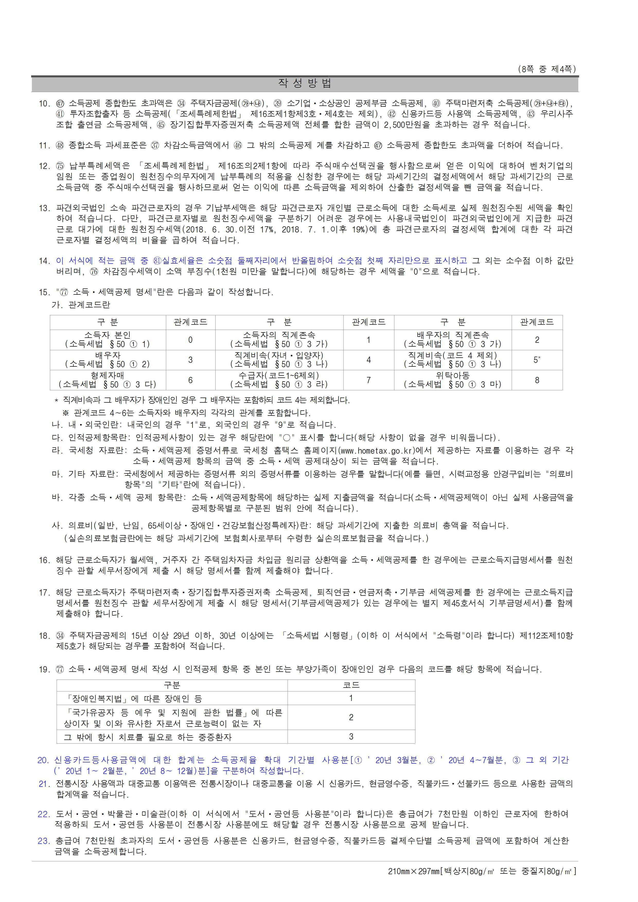 2020년 귀속 근로자를 위한 연말정산 안내 리플릿(게시용) - 대전지방국세청 작성자주황규|작성시간21.01.04|조회수417 목록 댓글 1 글자크기 작게가 글자크기 크게가 2020년 귀속 연말정산.pdf2.20MB14. 근로소득원천징수영수증 근로소득지급명세서(개정안)71.50KB14. 근로소득원천징수영수증 근로소득지급명세서(개정안)291.49KB 국세청 연말정산 종합 안내https://www.nts.go.kr/nts/ad/cntnts/cntntsView.do?mi=2304 근로자를_위한_연말정산_안내_리플릿(게시용).pdf2.87MB 첨부파일첨부된 파일이 28개 있습니다. jpg 파일 주황규.jpg 다운로드 jpg 파일 근로자를_위한_연말정산_안내_리플릿(게시용)_Page_08.jpg 다운로드 jpg 파일 근로자를_위한_연말정산_안내_리플릿(게시용)_Page_07.jpg 다운로드 jpg 파일 근로자를_위한_연말정산_안내_리플릿(게시용)_Page_04.jpg 다운로드 jpg 파일 근로자를_위한_연말정산_안내_리플릿(게시용)_Page_03.jpg 다운로드 jpg 파일 근로자를_위한_연말정산_안내_리플릿(게시용)_Page_06.jpg 다운로드 jpg 파일 근로자를_위한_연말정산_안내_리플릿(게시용)_Page_10.jpg 다운로드 jpg 파일 근로자를_위한_연말정산_안내_리플릿(게시용)_Page_05.jpg 다운로드 jpg 파일 근로자를_위한_연말정산_안내_리플릿(게시용)_Page_11.jpg 다운로드 jpg 파일 근로자를_위한_연말정산_안내_리플릿(게시용)_Page_09.jpg 다운로드 pdf 파일 근로자를_위한_연말정산_안내_리플릿(게시용).pdf 다운로드 jpg 파일 1.jpg 다운로드 jpg 파일 2.jpg 다운로드 jpg 파일 3.jpg 다운로드 jpg 파일 2020 연말정산.jpg 다운로드 jpg 파일 연말정산.jpg 다운로드 pdf 파일 2020년 귀속 연말정산.pdf 다운로드 png 파일 총급여.png 다운로드 jpg 파일 14001.jpg 다운로드 jpg 파일 14002.jpg 다운로드 jpg 파일 14003.jpg 다운로드 jpg 파일 14004.jpg 다운로드 jpg 파일 14006.jpg 다운로드 jpg 파일 14007.jpg 다운로드 jpg 파일 14008.jpg 다운로드 jpg 파일 14005.jpg 다운로드 hwp 파일 14. 근로소득원천징수영수증 근로소득지급명세서(개정안).hwp 다운로드 pdf 파일 14. 근로소득원천징수영수증 근로소득지급명세서(개정안).pdf 다운로드 다음검색 현재 게시글 추가 기능 열기 북마크 공유하기 신고 센터로 신고 댓글 댓글 1 댓글쓰기 답글쓰기 댓글 리스트 작성자세무박 | 작성시간 21.01.11 감사합니다. 댓글 전체보기