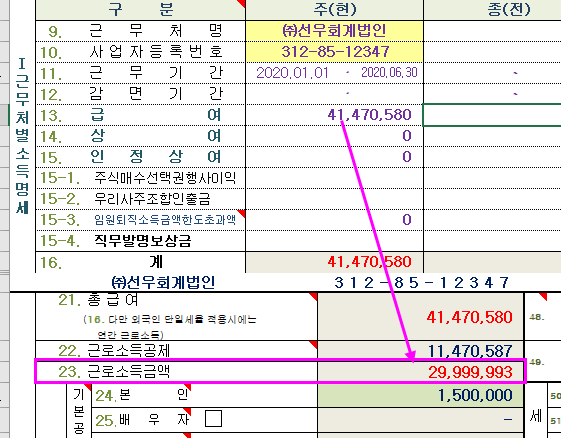 배우자가 있는 근로자의 부녀자공제 신고시 배우자가 소득이 있더라도 전자신고시 배우자의 성명및 주민등록번호를 기재해야 전자신고가 가능하므로, 배우자가 소득이 있는 경우 배우자 기본공제 X 라고 하고 배우자 성함 및 주민등록번호를 회사에 제출해야 합니다.