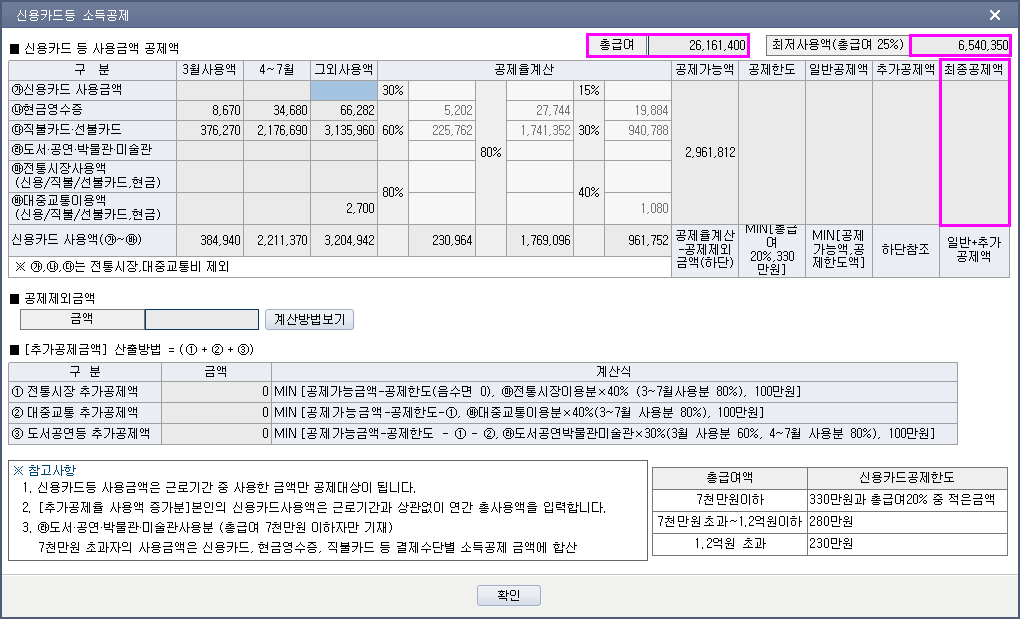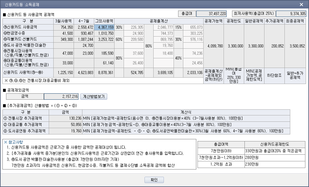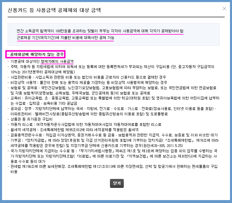 ☞ 신용카드 등 사용금액 공제제외 대상 금액