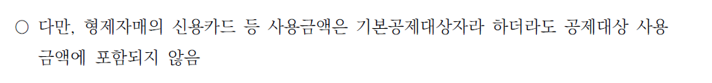 ▷ 형제자매(기본공제대상자 포함)가 사용한 신용카드 등 사용금액은 공제 불가