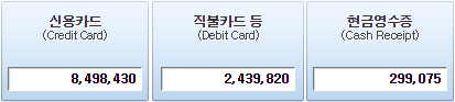 - 체크(직불)카드 거래 중 후불교통카드사용금액 등 일정기간 경과 후 카드사에 대금을 납부하는 경우에는 신용카드 사용금액으로 조회됨