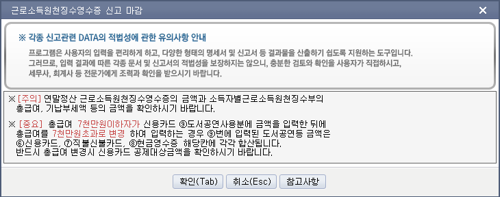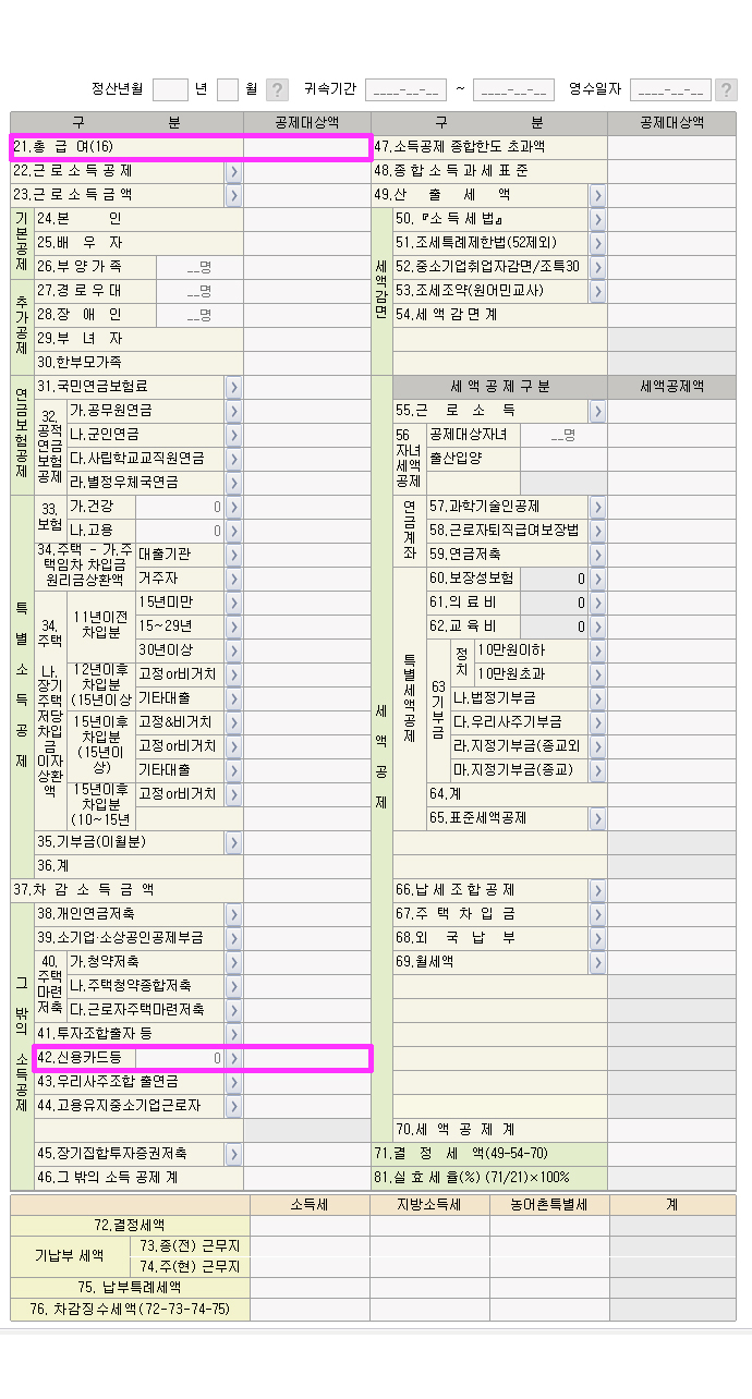 세무서중점확인사항 (▶기본공제대상자인 형제자매의 신용카드 등 사용금액을 제외하였는 지 확인)