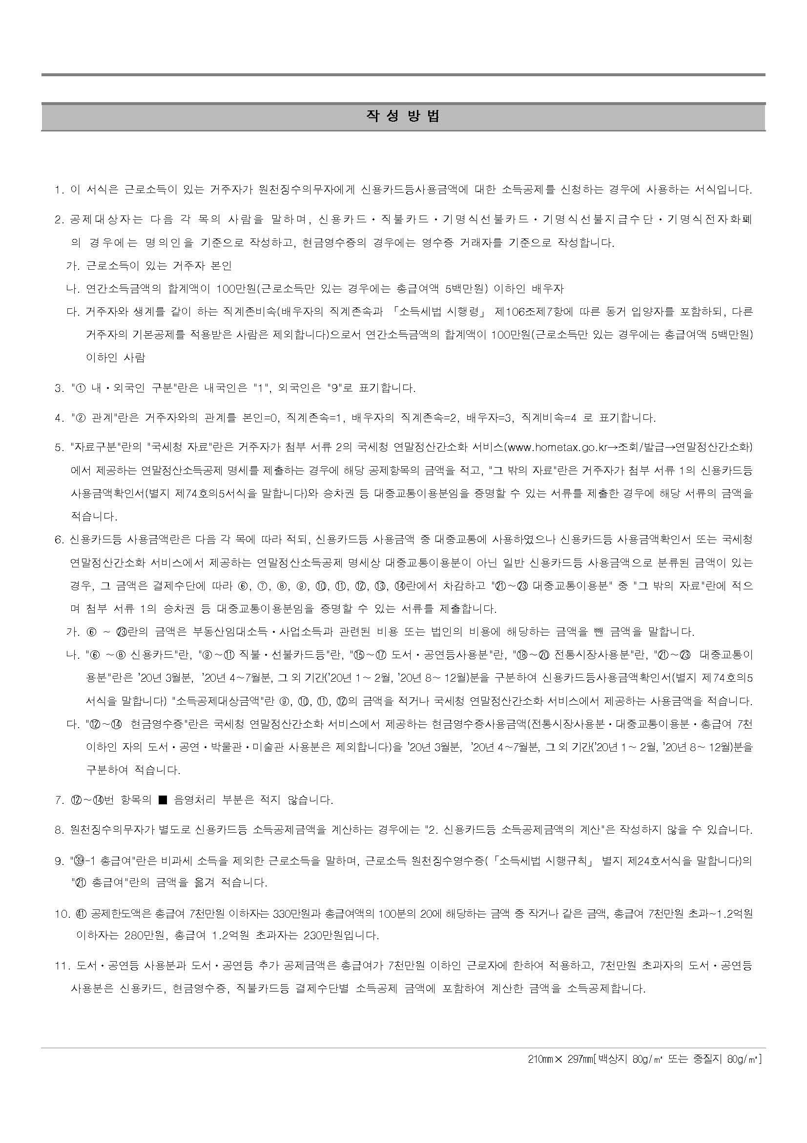 ※ 월세액 세액공제와 신용카드 등 사용금액 소득공제는 중복하여 받을 수 없습니다.