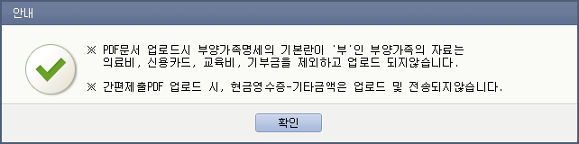 ※ 부양가족의 자료가 조회되지 않는 경우 자료제공동의 여부를 먼저 확인하시기 바랍니다.
