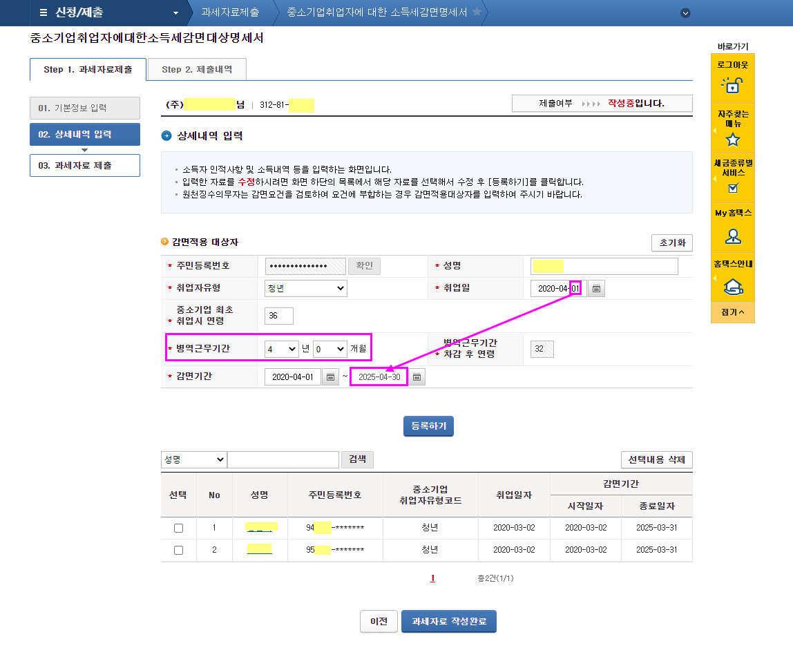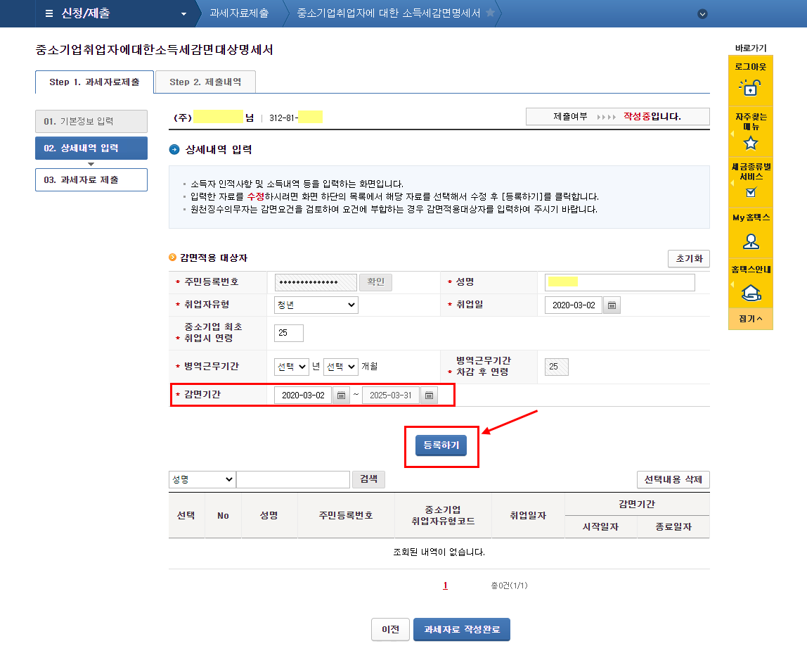 중소기업 취업자 소득세 감면 대상업종 확대 작성자주황규|작성시간21.01.26|조회수730 목록 댓글 0 글자크기 작게가 글자크기 크게가 0 - 2018 2019 2020 중소기업 취업자 소득세 감면신청서 (2021-01-28) 주황규.xlsx1.29MB※ 병역근무기간은 필수입력사항입니다. 첨부파일첨부된 파일이 15개 있습니다. jpg 파일 주황규.jpg 다운로드 jpg 파일 연말정산_Page_030.jpg 다운로드 png 파일 중소기업취업자.png 다운로드 png 파일 1.png 다운로드 jpg 파일 연말정산_Page_176.jpg 다운로드 jpg 파일 연말정산_Page_179.jpg 다운로드 jpg 파일 연말정산_Page_181.jpg 다운로드 jpg 파일 연말정산_Page_178.jpg 다운로드 jpg 파일 연말정산_Page_177.jpg 다운로드 jpg 파일 연말정산_Page_180.jpg 다운로드 png 파일 중소기업 취업감면.png 다운로드 png 파일 중소기업취업자에대한 소득세감면대상명세서.png 다운로드 png 파일 중소기업취업자감면 신청.png 다운로드 xlsx 파일 0 - 2018 2019 2020 중소기업 취업자 소득세 감면신청서 (2021-01-28) 주황규.xlsx 다운로드 png 파일 청년 중소기업 취업자.png 다운로드 다음검색 현재 게시글 추가 기능 열기 북마크 공유하기 신고 센터로 신고 댓글 댓글 0 댓글쓰기 답글쓰기 댓글 리스트