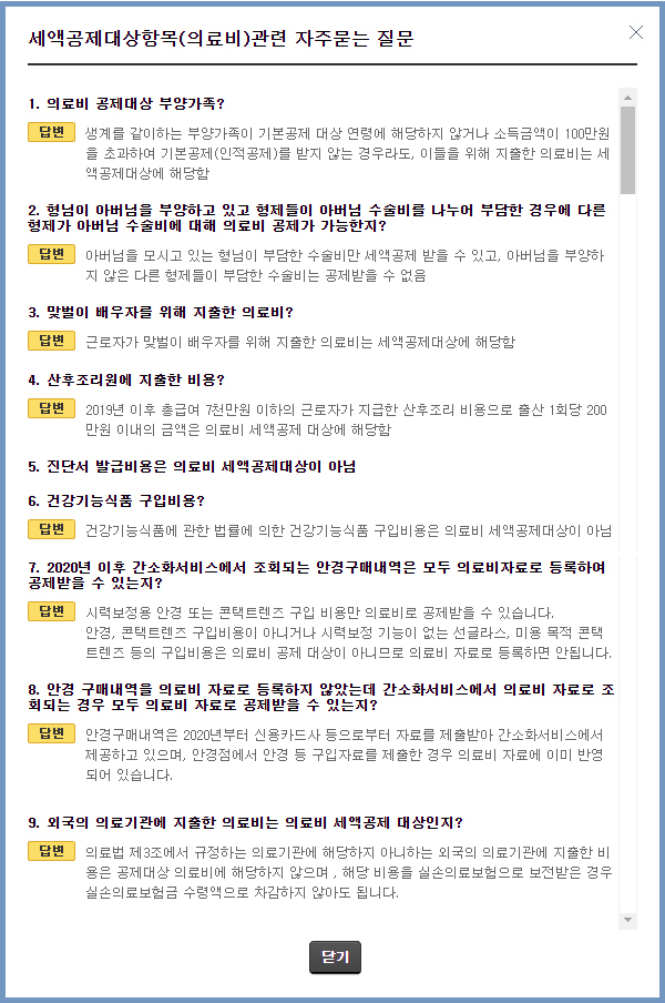 (유의) 해당 안경점에서 안경구입비 자료를 국세청에 제출한 경우 의료비 내역에 이미 반영되어 있습니다.