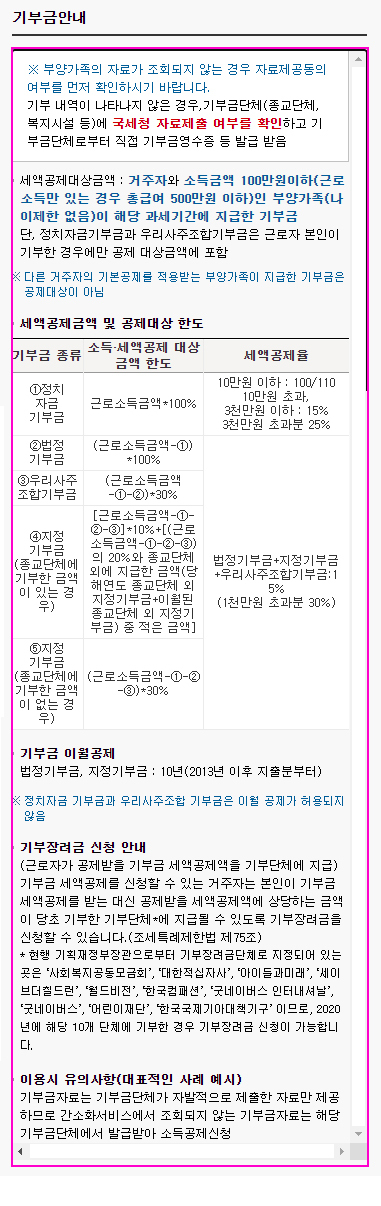 * 기부금, 교육비, 신용카드등사용금액에 대한 공제는 나이요건의 제한을 받지 않지만, 소득요건을 충족한 부양가족의 지출금액을 연말정산시 공제 반영하실 수 있습니다.